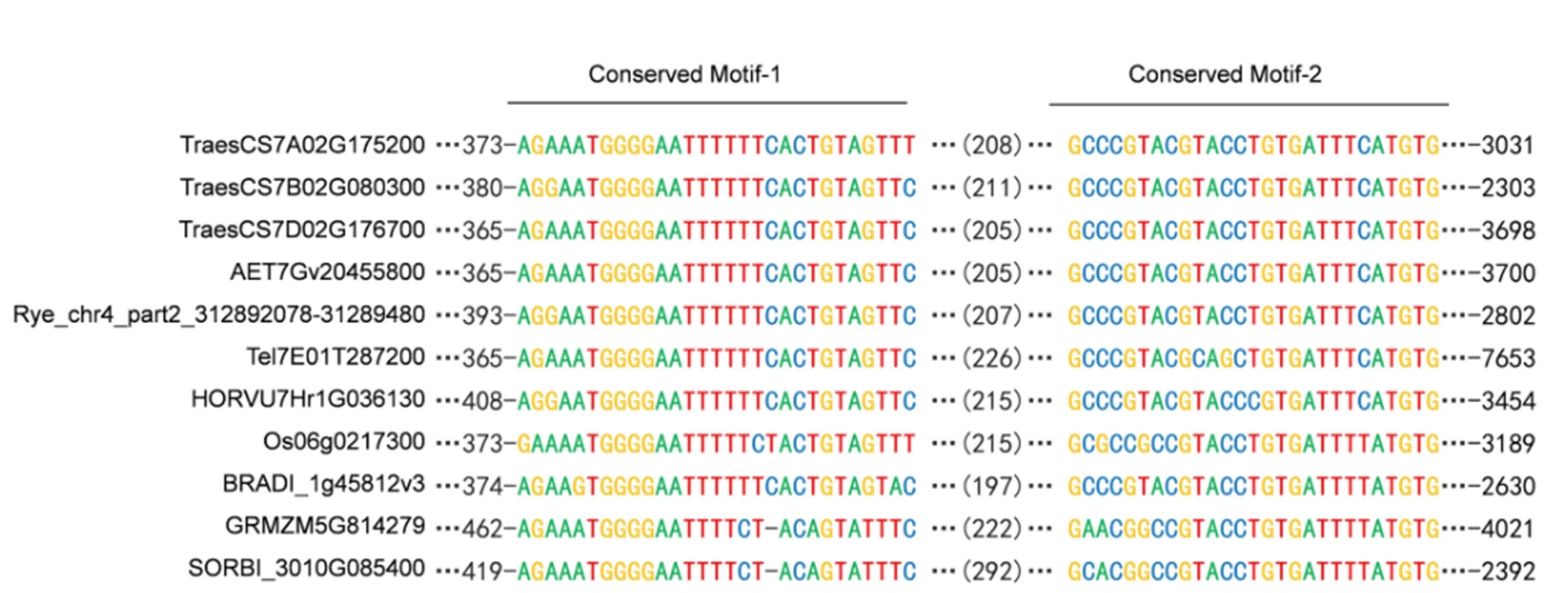 图4 TaVRT-A2内含子1的560bp序列中两个保守的转录因子结合基序可能作为沉默子调控该基因表达