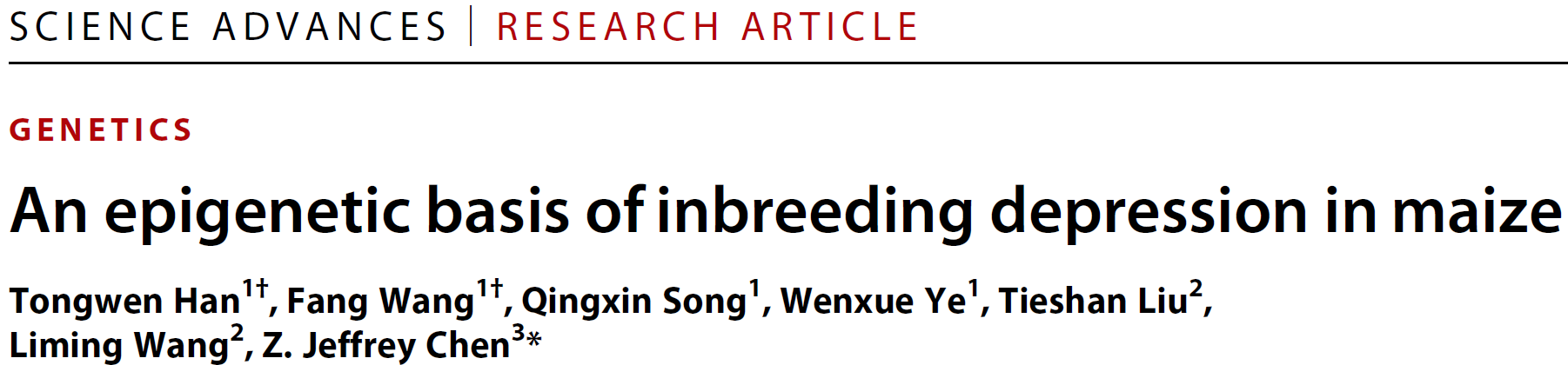 《Science Advances》发表多倍体团队“An epigenetic basis of inbreeding depression in maize”