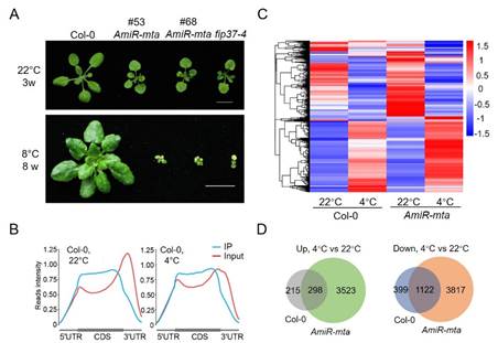 图1.MTA介导的mRNA m6A修饰参与拟南芥低温响应调节