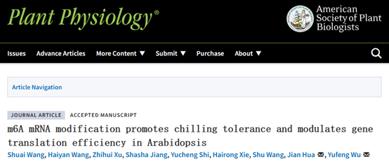 《Plant Physiology》吴玉峰教授团队联合康奈尔大学Jian Hua教授在线发表“m6A mRNA modification promotes chilling tolerance and modulates gene translation efficiency in Arabidopsis”