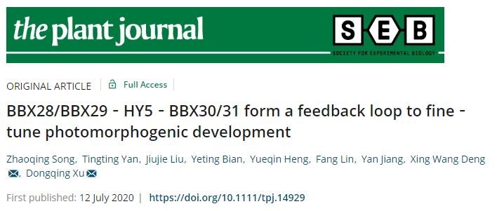 《The Plant Journal》发表许冬清教授实验室“BBX28/BBX29-HY5-BBX30/31 form a feedback loop to fine-tune photomorphogenic development”