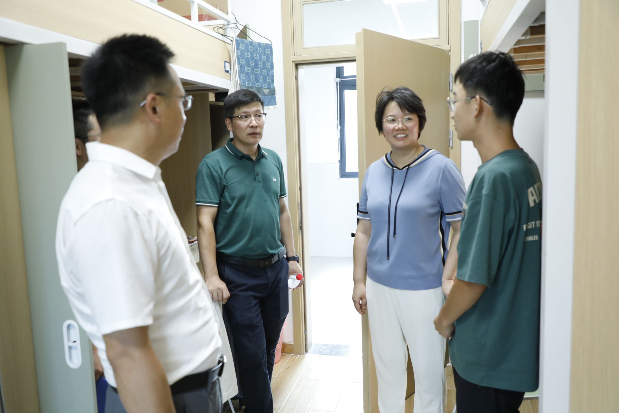 9月8日下午,农学院党委书记庄森、院长刘裕强、党委副书记殷美、副院长王益华,以及辅导员一行走访了滨江校区本科生、研究生老生宿舍。