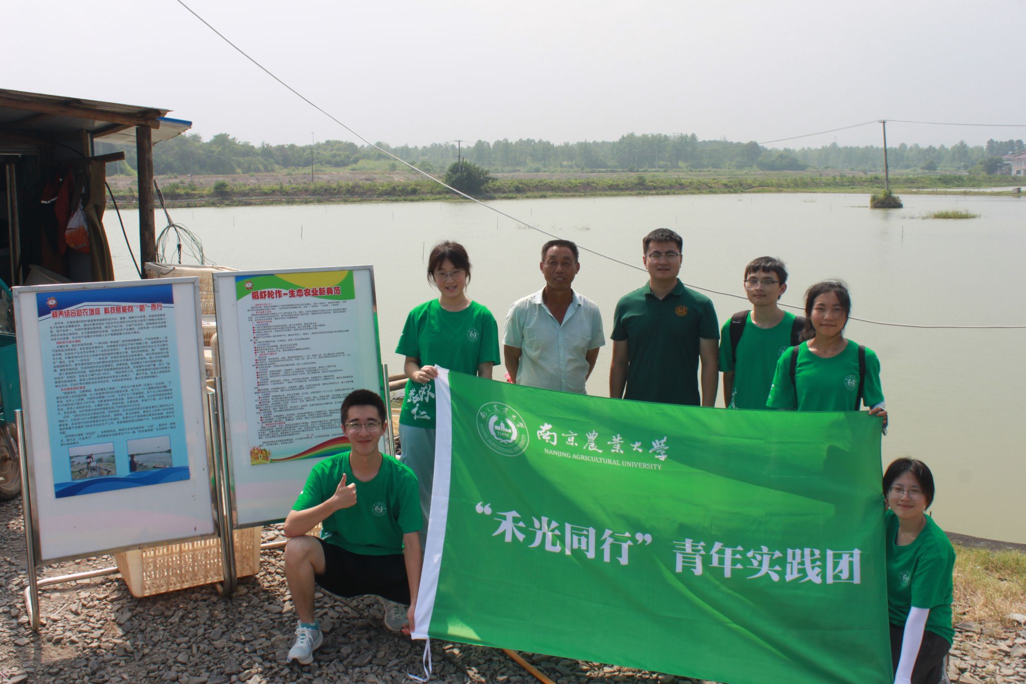 2025年7月10日,ios版雷竞技官网农学院“禾”光同行青年实践团在辅导员杨宸宇的带领下,在南京市溧水区向阳村完成了一场生动实践。通过“共享绿色家园”主题宣讲深化村民环保认知,深入调研揭示向阳村发展现状,并重点发掘了当地“稻虾轮作”模式的运用,切身感受了乡村发展的脉动与温情。