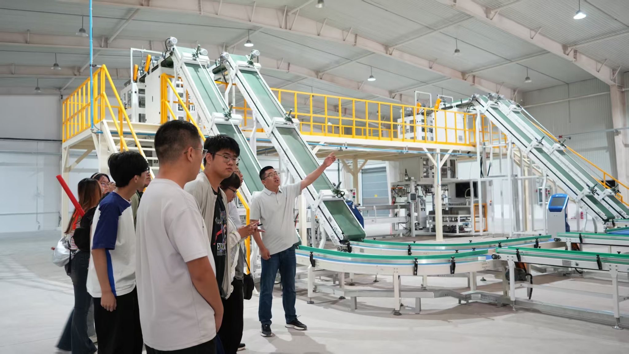 在甘肃明天种业科技有限公司总经理祁长林的统一协调下,实践团参观了国家玉米种子产业园内的盈润恒达种业加工厂、甘肃明天种业加工厂以及企业育种研发平台。甘肃盈润恒达种业有限公司总经理朱博亮通过现场讲解与演示,系统介绍了玉米种子从精选、烘干、筛分、包衣到包装的完整加工流程,并重点阐述了企业在智能化流水线、标准化作业管理和质量追溯体系方面的实践经验。
