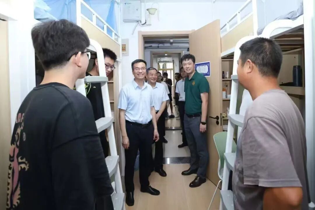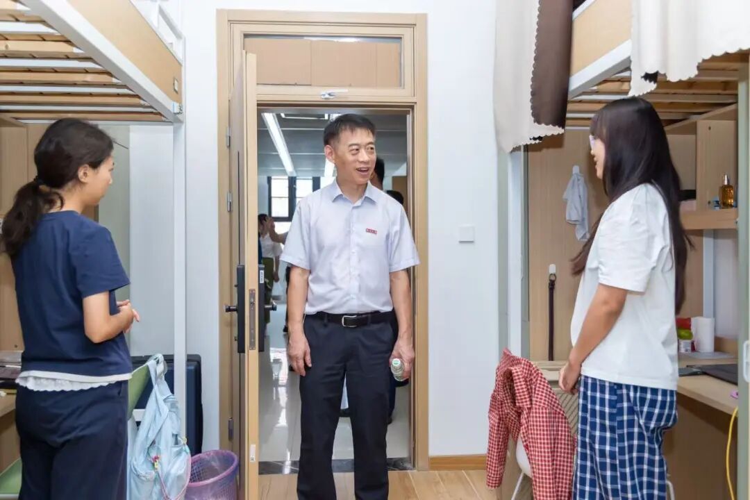 报到当天,学院党政领导班子共同前往2025级新生宿舍,了解学生适应情况,关心学生实际需求,帮助解决实际困难。