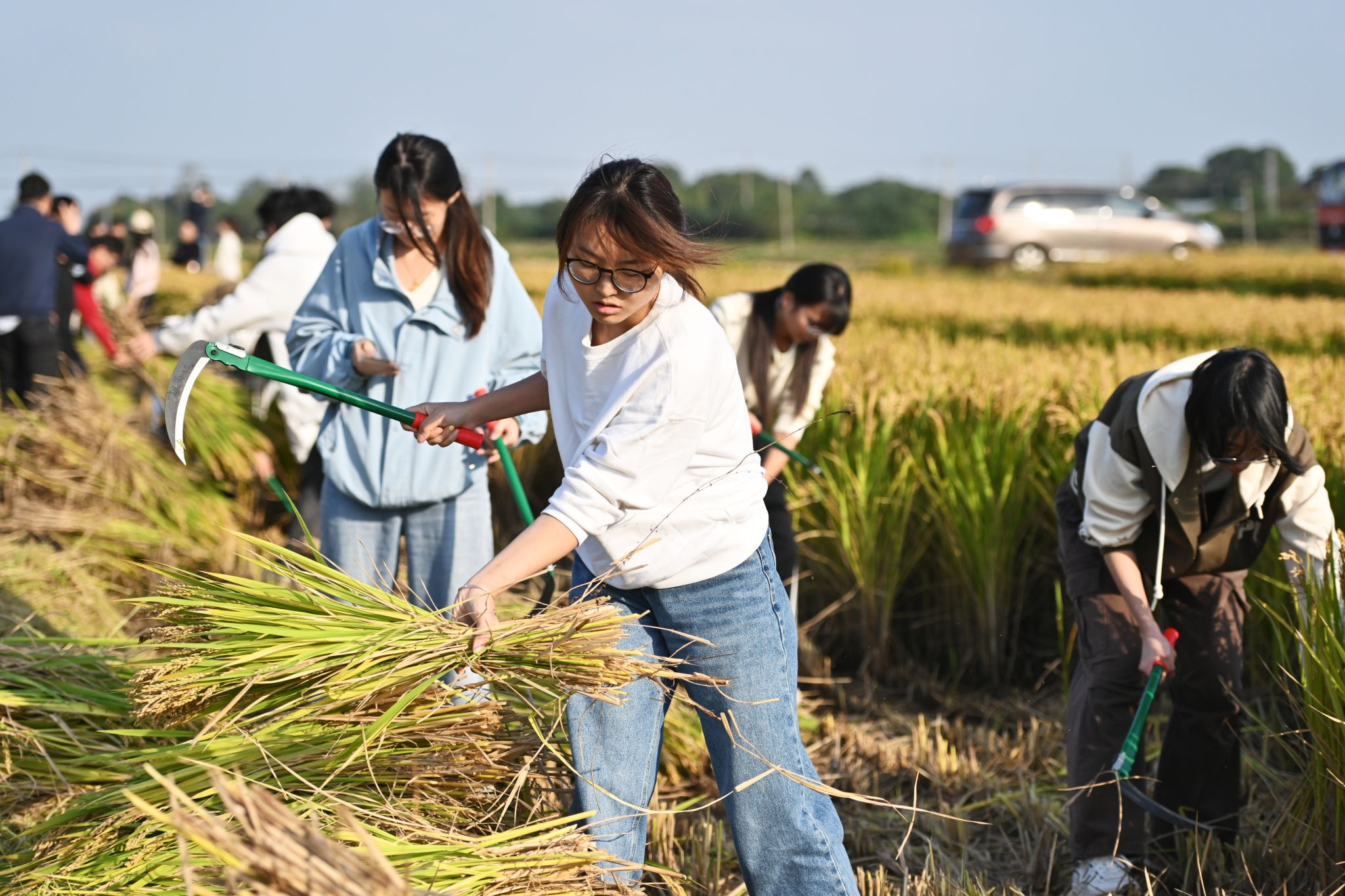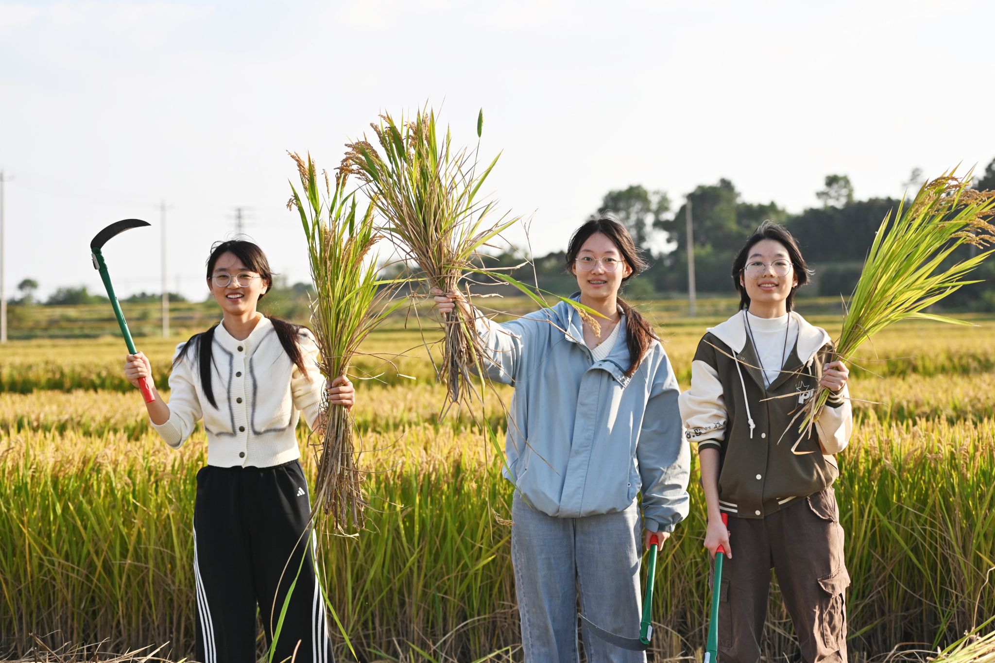 收割“食堂同款”稻米,农科学子在田间课堂感悟强农使命