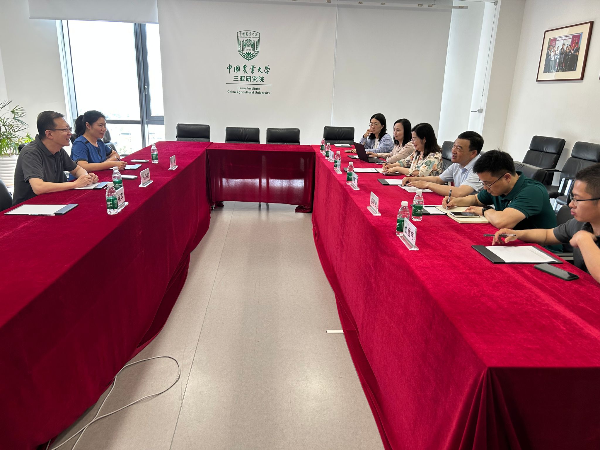 在我校三亚研究院办学新址大豆园艺作物种质创新中心大楼,俞建飞一行与三亚研究院各部门相关负责人进行了深入座谈交流。姜爱良详细介绍了三亚研究院的发展概况及重大平台建设情况,双方围绕研究院的发展定位、人才培养、社会合作、国际交流,目前存在问题及下一步重点工作等内容展开讨论。俞建飞充分肯定了研究院取得的成绩,希望研究院进一步明确发展定位,聚焦“种业自主”国家战略,整合学校优势团队,加强科研攻关,强化社会服务,积极拓展热带农业学科专业新的增长点,更好地支撑服务地方产业和学校高质量发展。