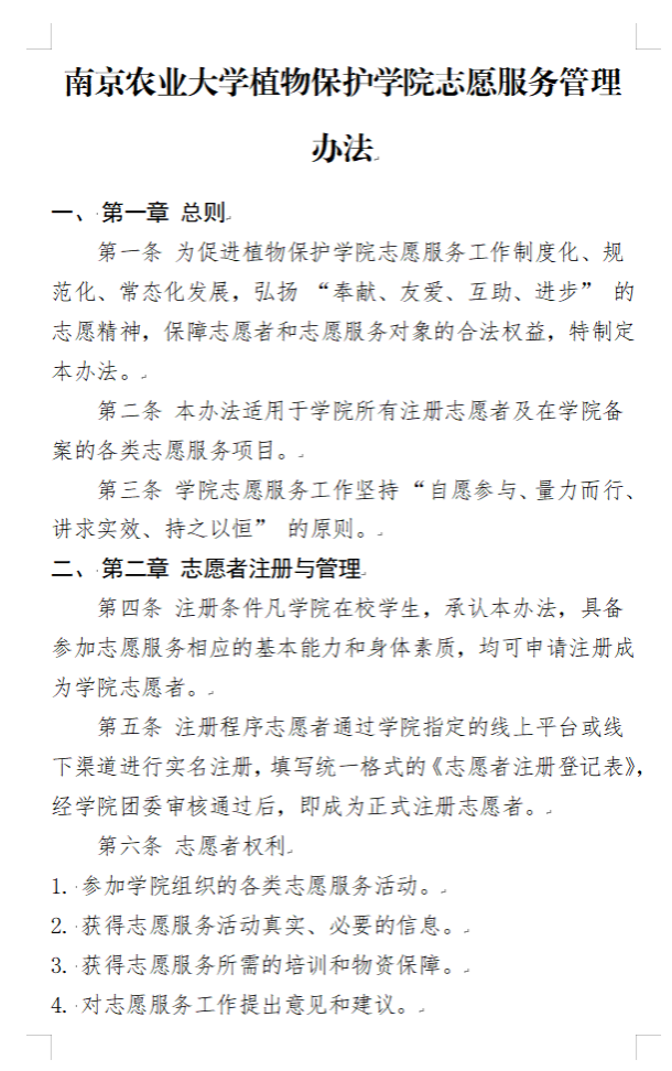 学院高度重视志愿服务制度化建设,修订《植物保护学院志愿服务管理办法》,明确志愿者注册、培训、考核与激励机制。实施“项目化运作+分层管理”模式,依托“四层三级”体系,确保项目从策划、执行到评估全过程规范有序。在志愿者管理方面,推行“培训+实践+反思”闭环培养机制,全年开展志愿服务礼仪、项目策划、安全防护、专业科普技能等专题培训7次。