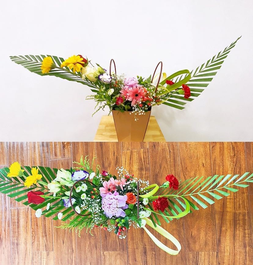 比赛开始后,各位同学发挥创造力,施展插花技能,结合花朵的不同种类、色彩以及寓意,制作了一个个、一束束漂亮美丽的花篮、花束。经过两个半小时的创作,一件件艺术佳作在同学们的手中诞生,现场俨然成为花的殿堂。最后同学们将自己的作品进行了集中展示,指导老师对同学们的作品进行点评和打分。