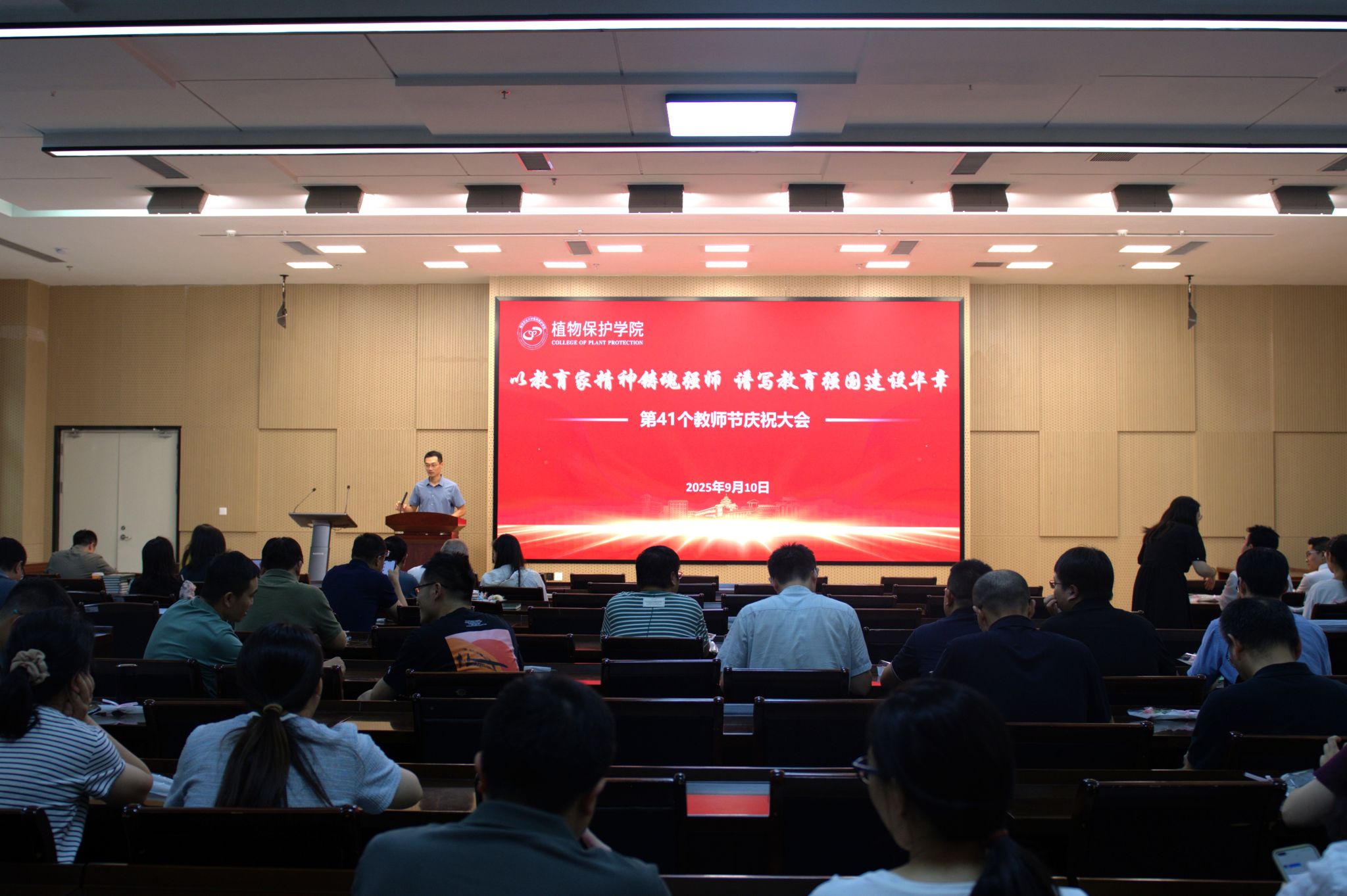 金秋送爽,硕果盈枝。在这个寓意着收获与感恩的美好时节,我们迎来了第41个教师节。9月10日下午,植物保护学院在21号楼114会议室举行“以教育家精神铸魂强师 谱写教育强国建设华章”主题教师节庆祝活动。活动由学院党委副书记陈志亮主持,全院教职工齐聚一堂,共同庆祝这个属于教育工作者的光荣节日。