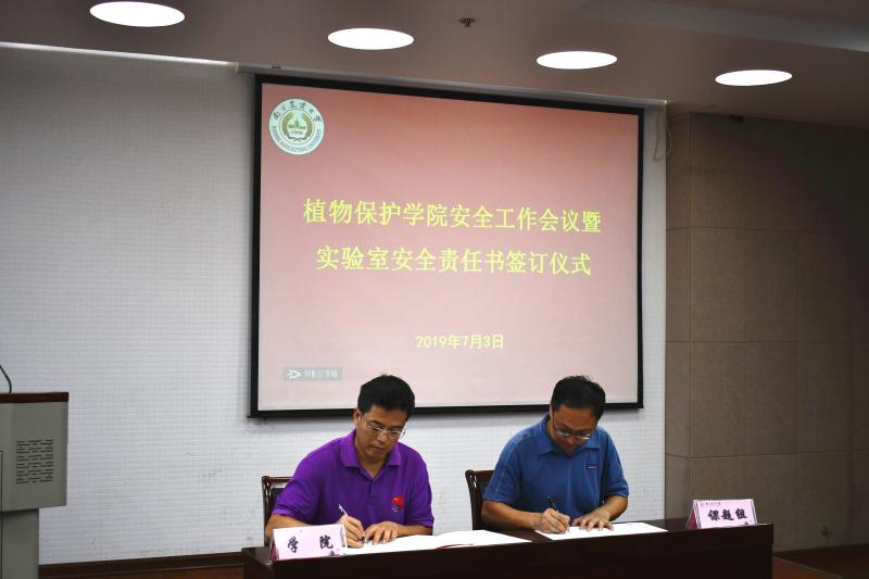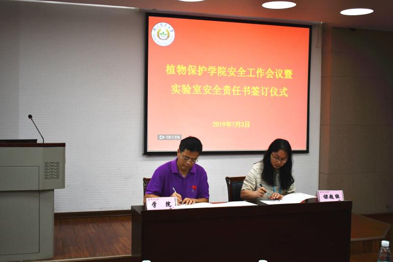 7月3日下午,ios版雷竞技官网植物保护学院安全工作会议暨消防安全和实验室安全责任书签订仪式在理科楼C305报告厅举行。植物保护学院院长王源超,副院长张正光、叶永浩、王兴亮,以及各个实验室的负责人和安全员老师参加了此次会议,会议由副院长张正光主持。