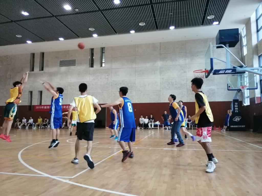 第二场比赛在研究生队和本科生队之间进行,院党委书记邵刚亲自为两队开球。比赛刚开始双方便进入状态,现场气氛迅速升温,研究生配合默契,频频得分,本科生不甘示弱,三分线外,屡试不爽。半场结束,本科生24:18领先。下半场比赛,两队的女同学更是有不俗的表现,纷纷取得进球。在研究生队落后的时候,队长王天硕站了出来,里突外投,拿下一波10:0小高潮,成功将比分反超。最终研究生队45:41取得胜利,拿下第二局,提前锁定冠军。