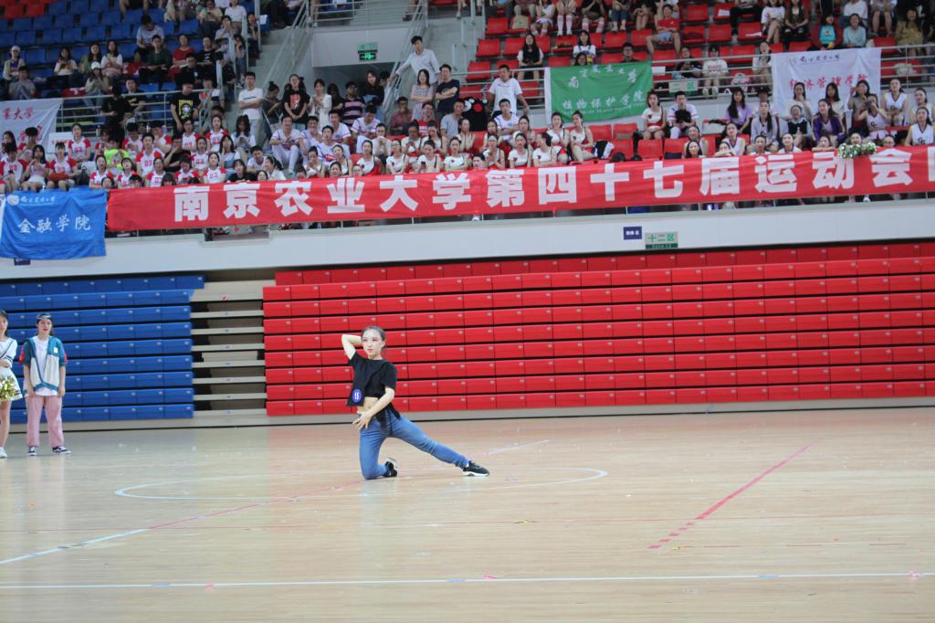 比赛开始,植保院队员们挺直背板,手拿亮闪闪的花球,轻快地迈进场地。随着音乐响起,精神饱满的队员们舞动起来,旋转跳跃,每一步都踩在动感十足的鼓点上,每一声都敲进观众们的心里。每一次弯腰,每一个舞步,每一处站立,她们只为在看台上的绚烂夺目。伴随着澎湃轻快的旋律,她们释放心中的激情,魅力四射。