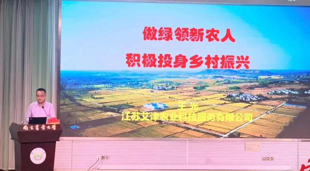 5月17日下午,江苏艾津功能农业研究院有限公司副总经理、技术总监,南京艾津植保有限公司董事长王光做客我校第40期青穗讲堂,带来以“做绿领新农人,积极投身乡村振兴”为主题的分享。本次活动由校团委主办,植物保护学院团委承办,来自全校近200名师生聆听了本次讲座,活动由植物保护学院党委副书记吴智丹主持。
