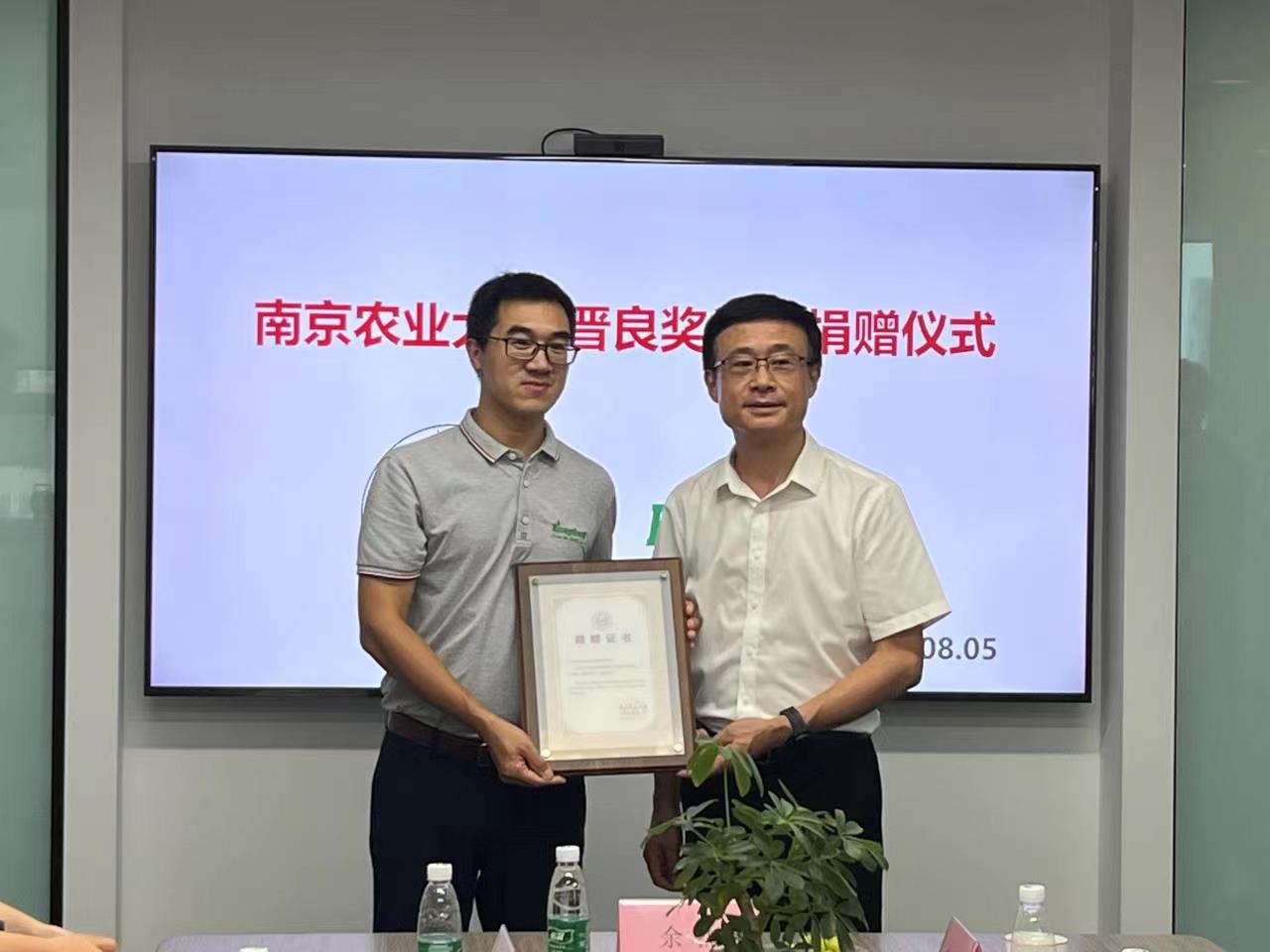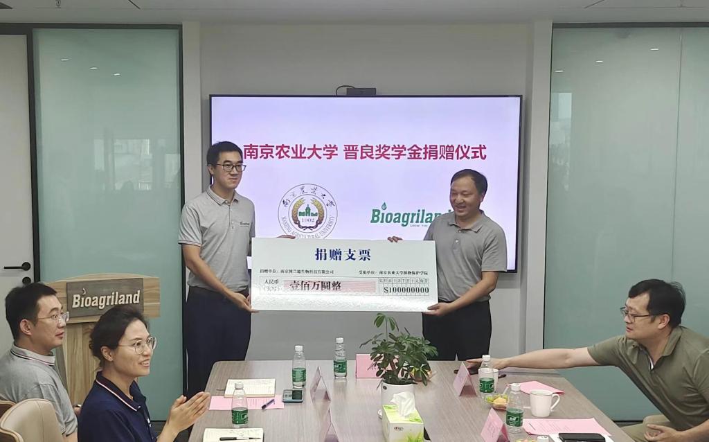 为促进农药行业深度产学研合作,ios版雷竞技官网植物保护学院、南京博兰德生物科技有限公司共同发起成立农药学科发展基金,博兰德捐赠100万元做为晋良奖学金启动资金,鼓励学生勤奋学习,开展高水平创新性科学研究。李赟向学校捐赠支票,胡锋代表学校基金会颁发捐赠证书。