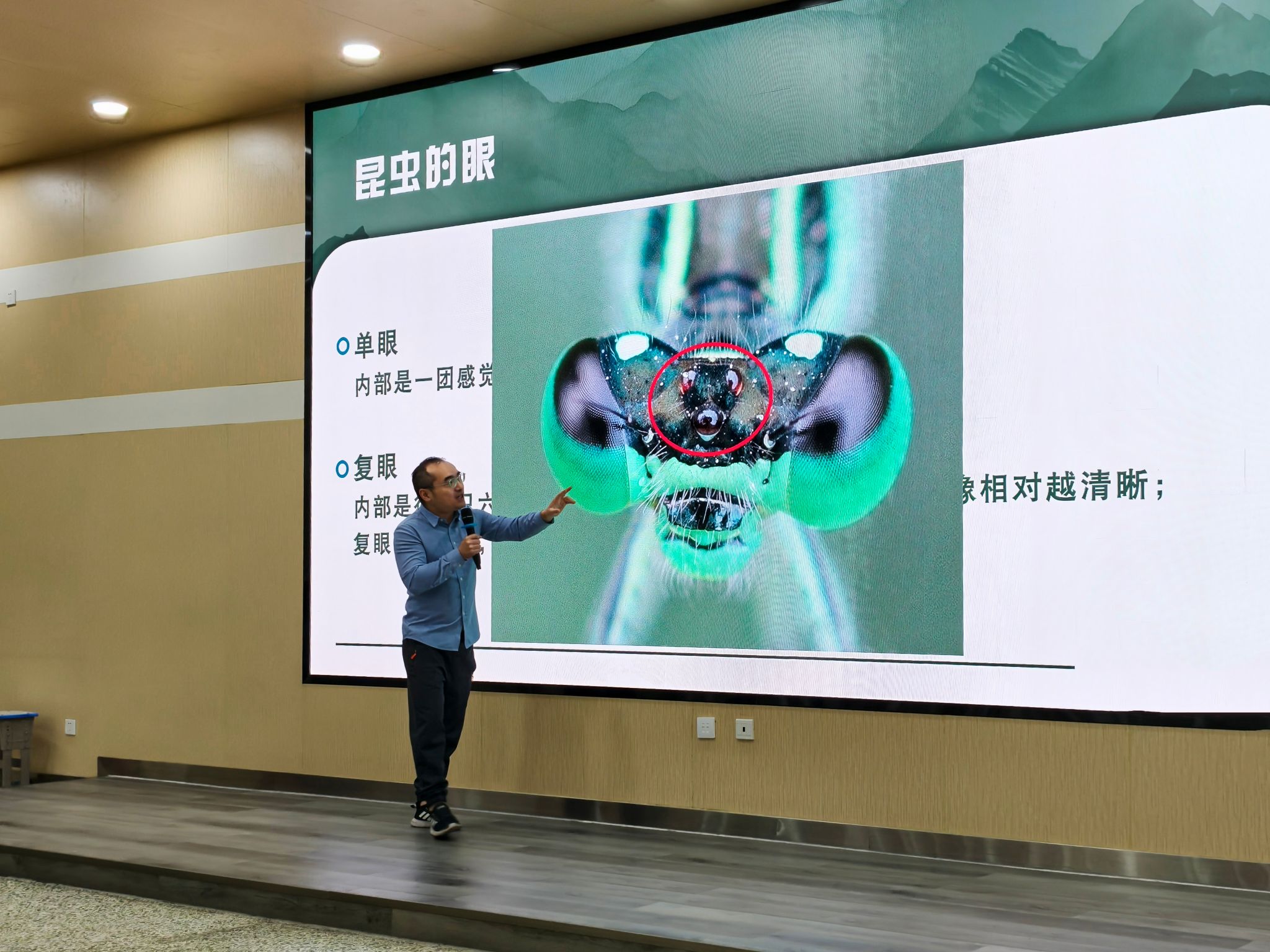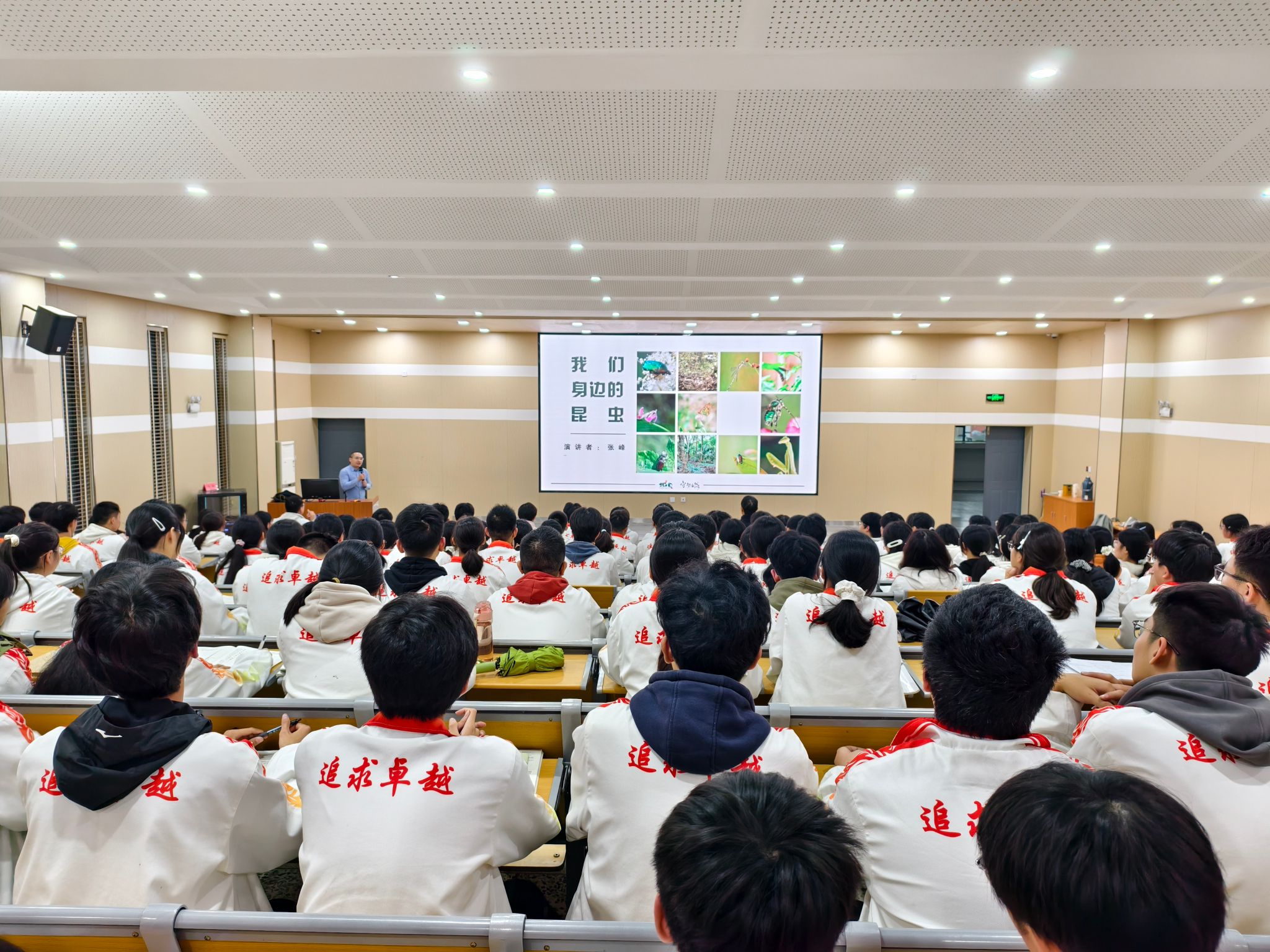 张峰为同学们带来了题为《我们身边的昆虫》的科普讲座。从昆虫的定义、形态特征、常见种类,到昆虫在日常生活中的应用,他用生动有趣的方式,深入浅出地讲解了昆虫的基本知识,拓宽了学生的科学视野。讲座现场氛围热烈,同学们互动积极,对昆虫相关的知识表现出浓厚的兴趣。科普讲座反响热烈。