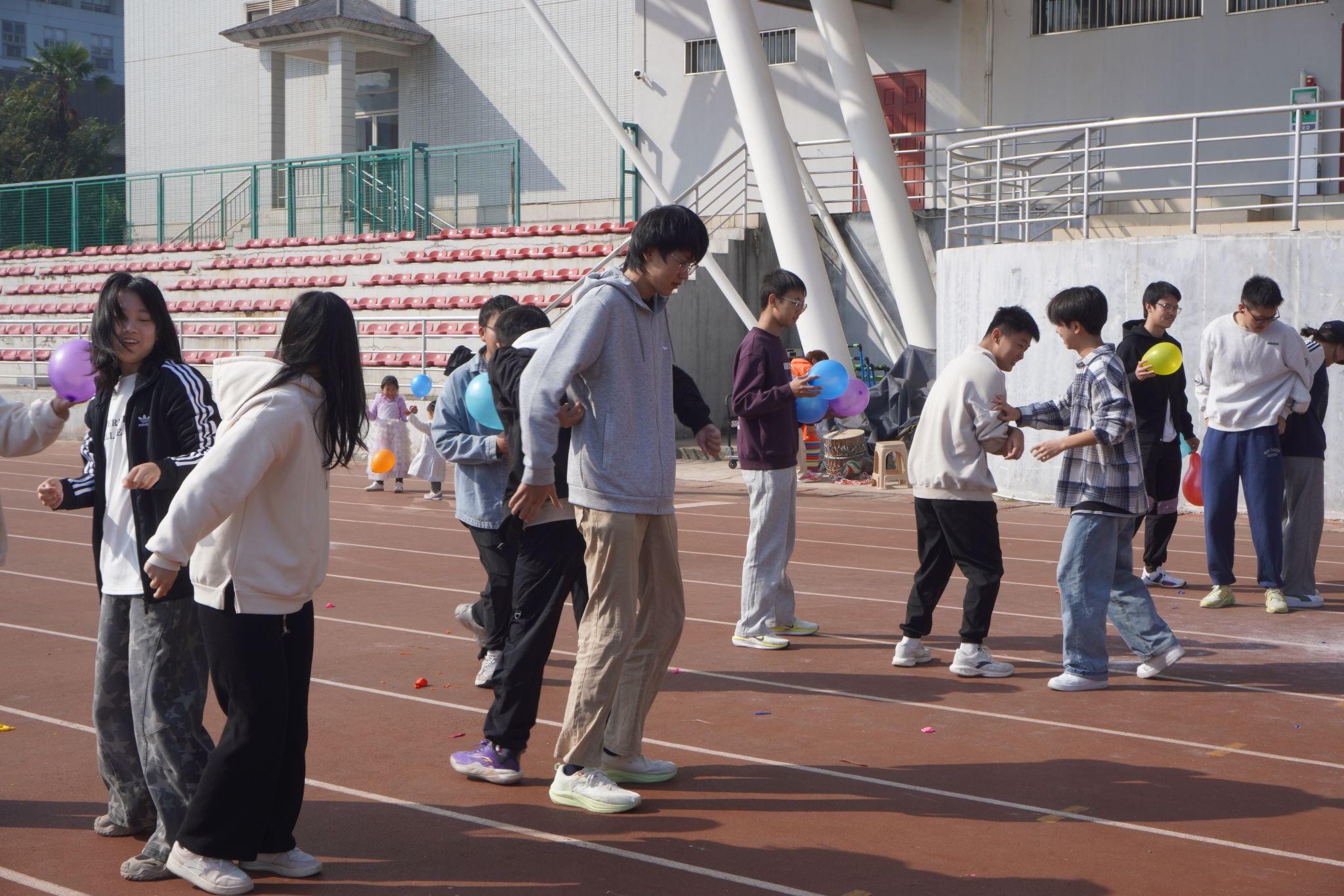 在夹爆气球中,老师同学们多次尝试,调整策略,默契协作间终于夹爆气球,展现青春激情。
