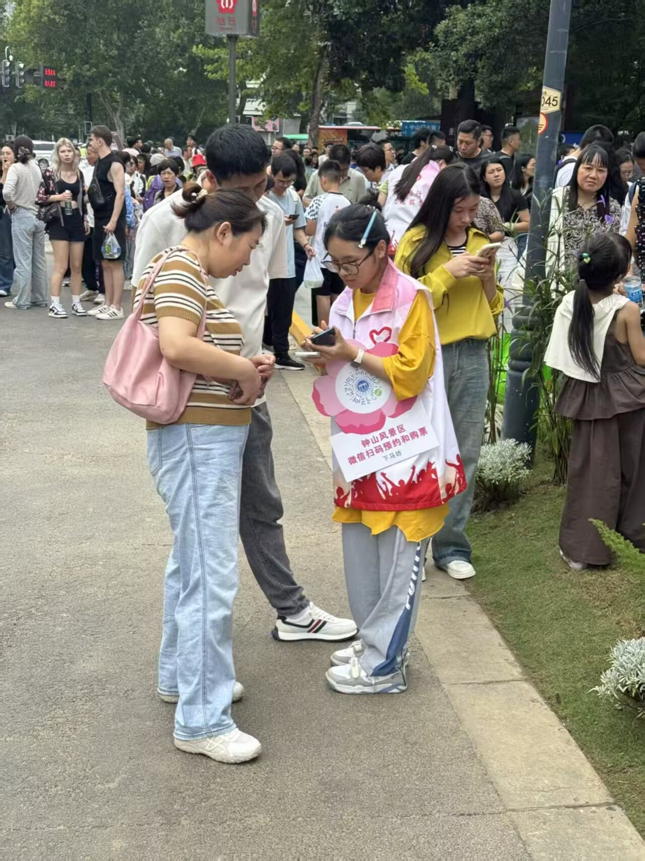 志愿身份:国庆身着红马甲在中山陵服务,为游客指路讲解,帮爷爷奶奶操作手机预约参观。微小举动,也能传递一座城市的温度。