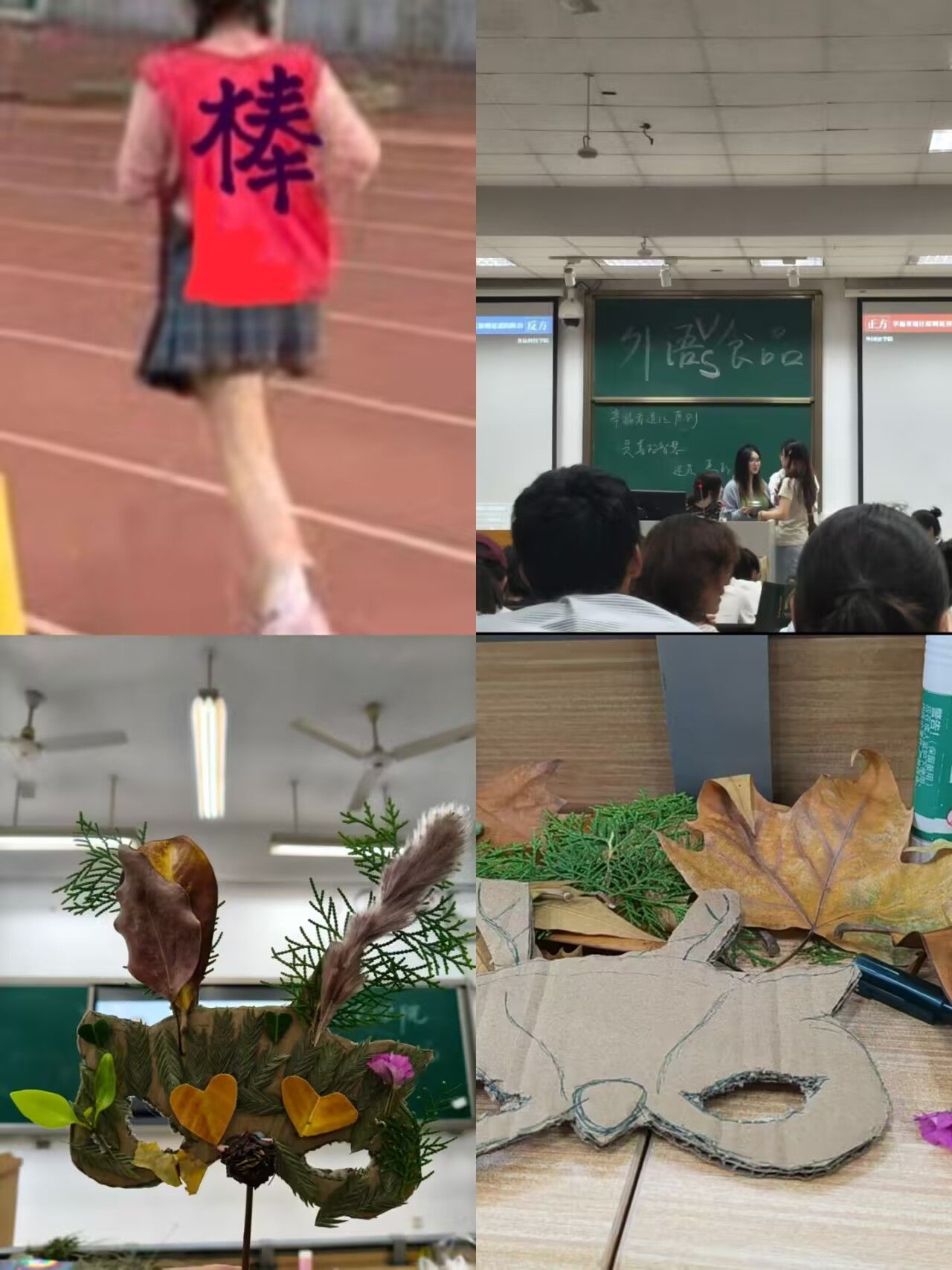 运动会1500米、跨界讲座、手工DIY……我也一场不落。冲线时的欢呼、记满的笔记、亲手做的树叶面具,都是大学生活里闪闪发光的碎片。