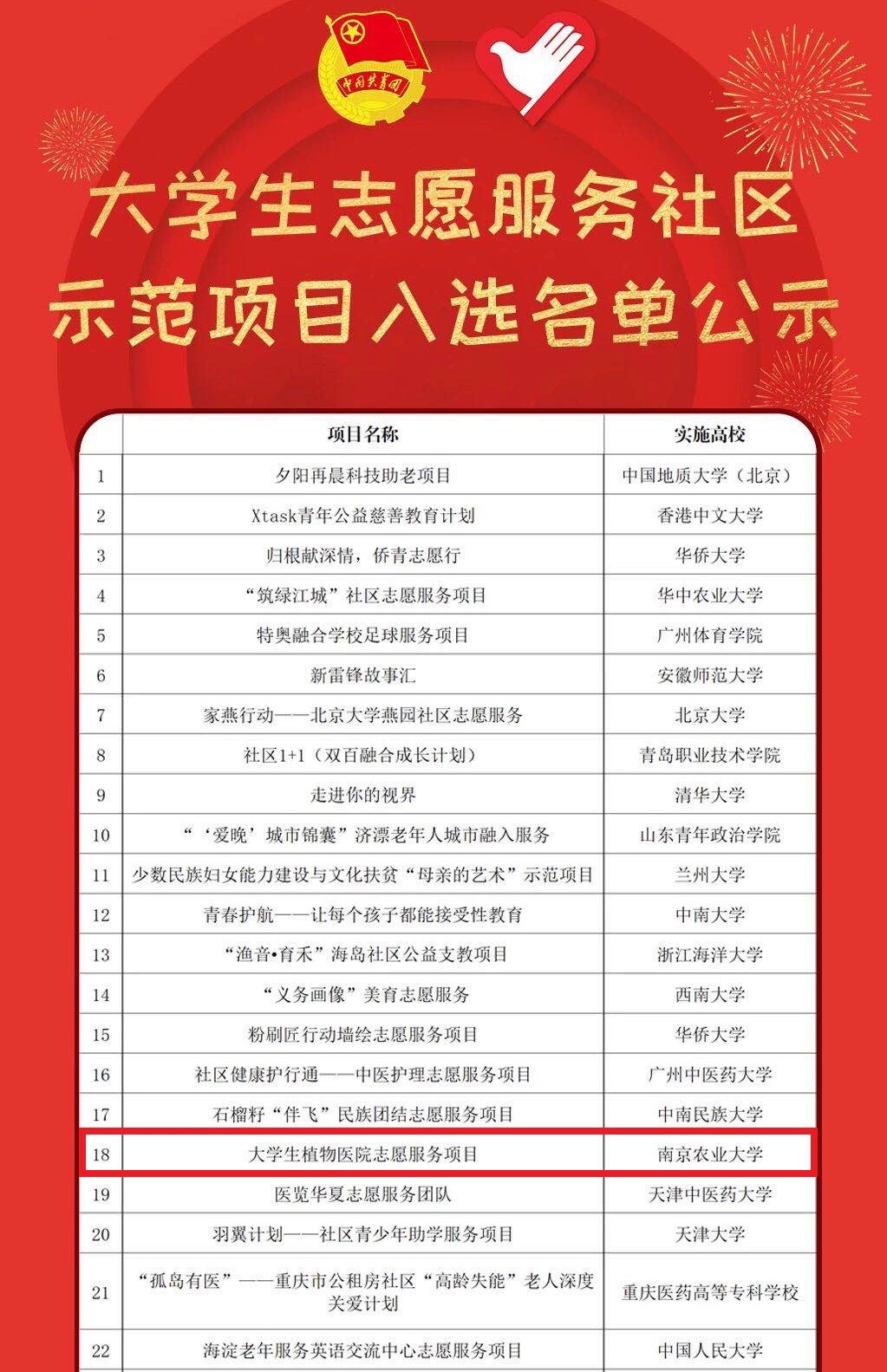 植保院大学生植物医院志愿服务项目入选全国“大学生志愿服务社区示范项目”