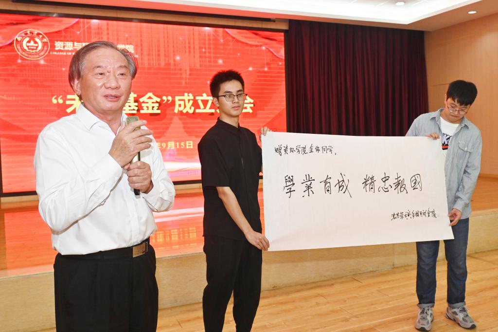 胡锋代表学校,向“未来基金会”的成立表示祝贺。他指出,“未来基金”的设立和实施,将有力地促进资环学院优秀学子的成长和青年教师的发展,为双一流学科建设和一流人才培养打下坚实的基础,学校也将全力支持资环学院的人才培养和可持续发展。