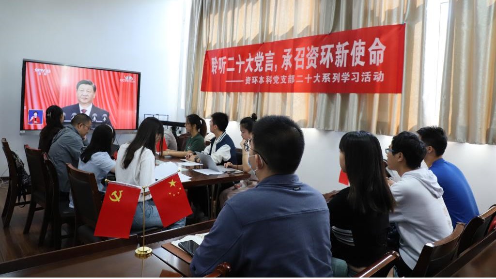 据悉,资环学院师生代表在收看开幕式后,还立足专业“沉浸式”学习了党的党的二十大报告,生动呈现了“绿色发展中的资环力量”。