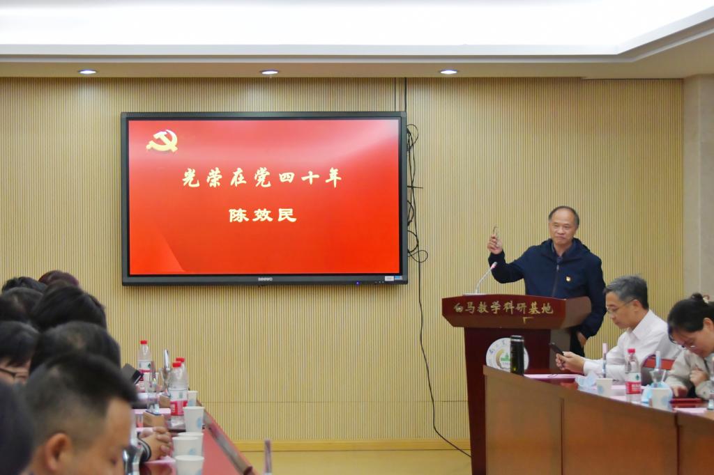 陈效民教授回顾在党40年的点点滴滴,讲述了他从农村青年成长为大学教师一路上党组织对他的教育和培养的初心故事。他嘱托青年党员,要牢记党员初心,为党的形象增光添彩。