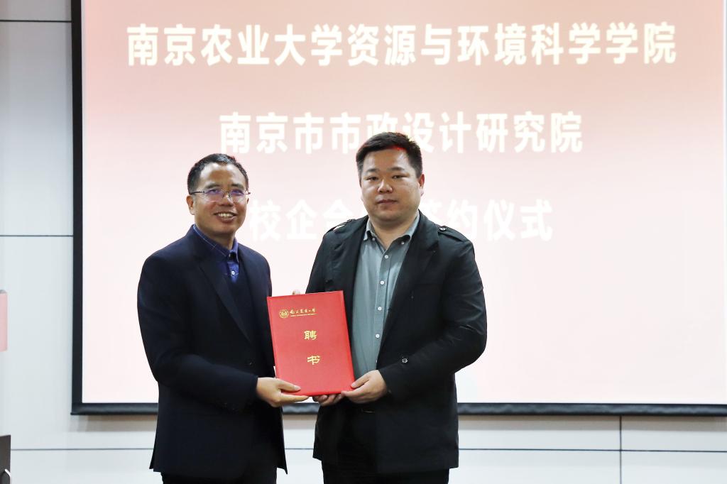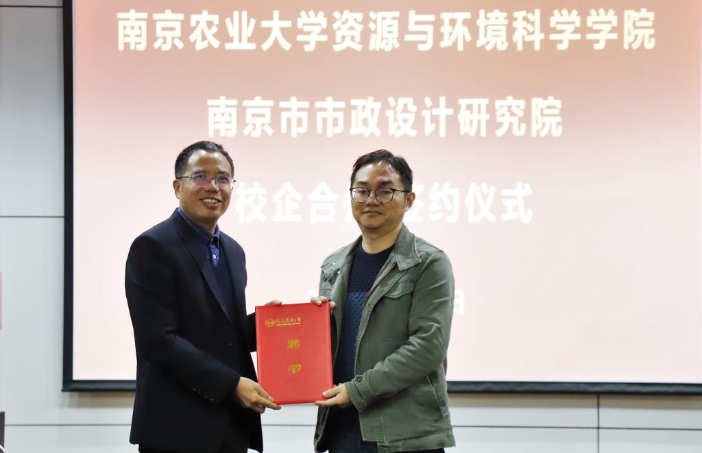 1月17日,我院与南京市政院校企合作签约暨实践教学基地揭牌仪式在资环楼举行。学院党委书记全思懋、南京市政院党委书记 总经理夏文林、副总经理兼总工程师王阿华、总经理助理兼产品研究院院长孔宇、设计四院副院长任云、设计四院副总工程师黄敏,学院副院长张旭辉、环境学科负责人周立祥教授等出席仪式,环境工程系主要教师参加仪式,仪式由环境工程系系主任郑冠宇教授主持。