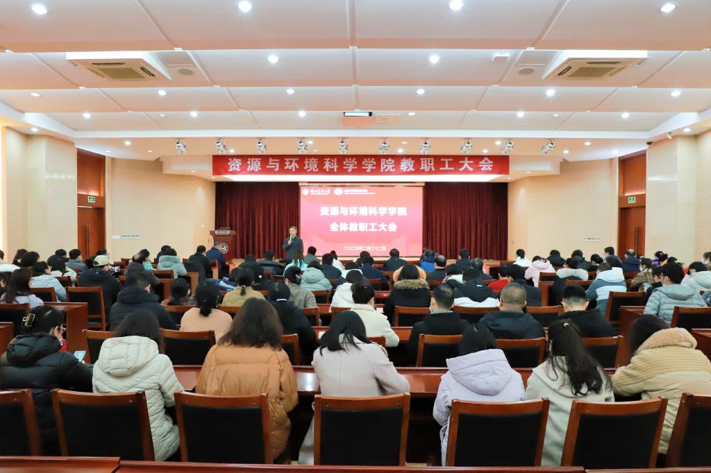 院长李荣作题为《百年资环新起点,砥砺前行再出发》的主题报告,报告分别从师资队伍建设、学科和专业建设、人才培养、科学研究以及社会服务等方面对2023年学院十项重点工作进行了介绍和部署。