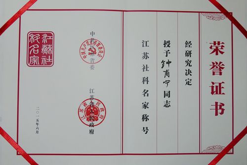 近日,在江苏省第二届 “紫金文化奖章”和“江苏社科名家”评选活动中,我校钟甫宁教授被授予“江苏社科名家”称号。