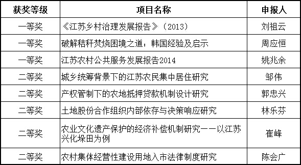据江苏省哲学社会科学界联合会《关于表彰2014年度“省社科应用研究精品工程”奖获奖项目的决定》苏社联发[2015]46号)文件精神,我校8项成果获江苏省“社科应用研究精品工程”优秀成果奖,其中一等奖3项,二等奖5项,一等奖获奖数量位居全省高校及研究院所第三位。