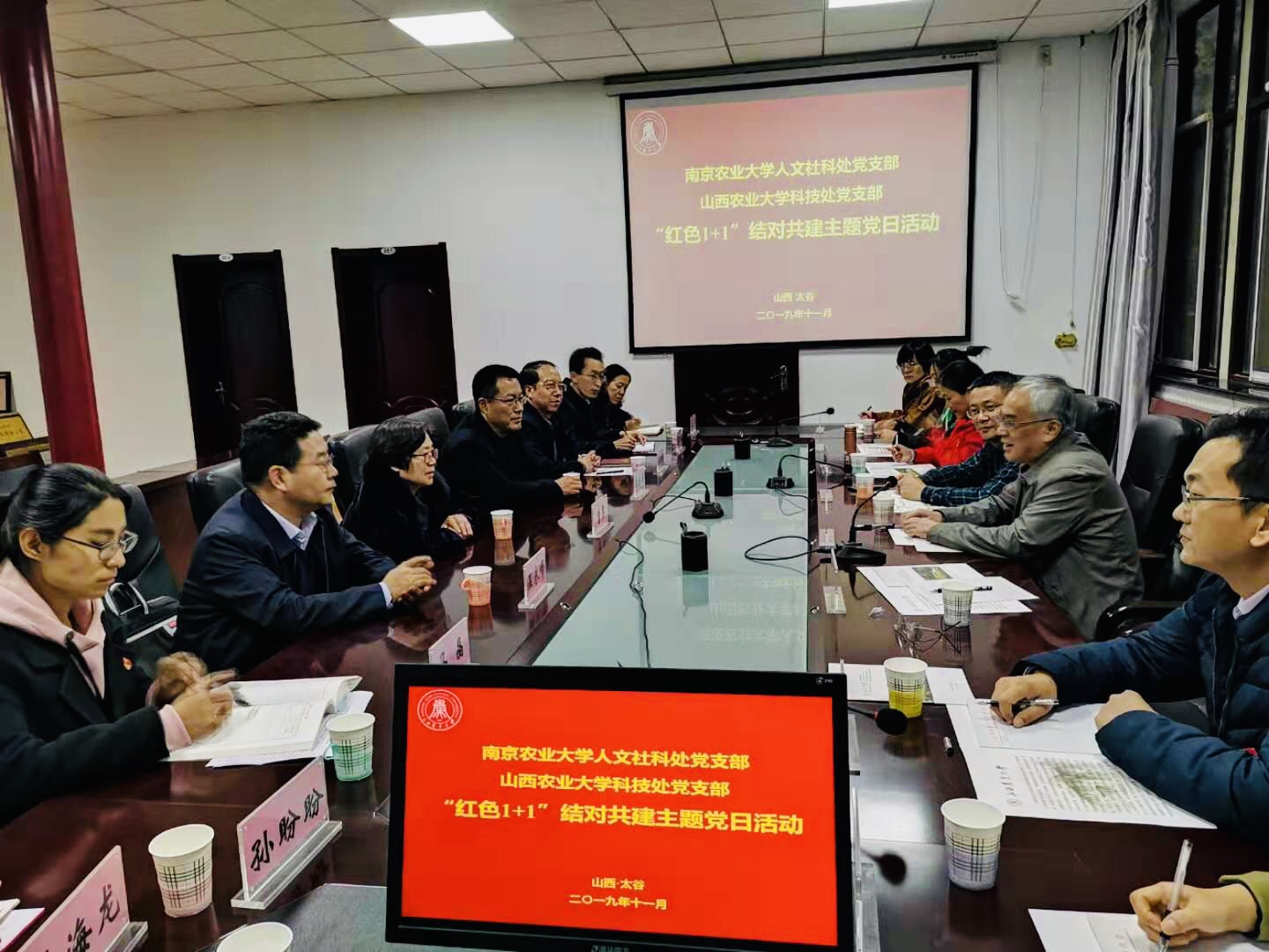 今年7月,ios版雷竞技官网人文社科处党支部与山西农业大学科技处党支部共同签署了“红色1+1”结对共建协议,旨在进行资源共享、干部联动、建设互促、发展共赢,实现1+1>2的共建效果。