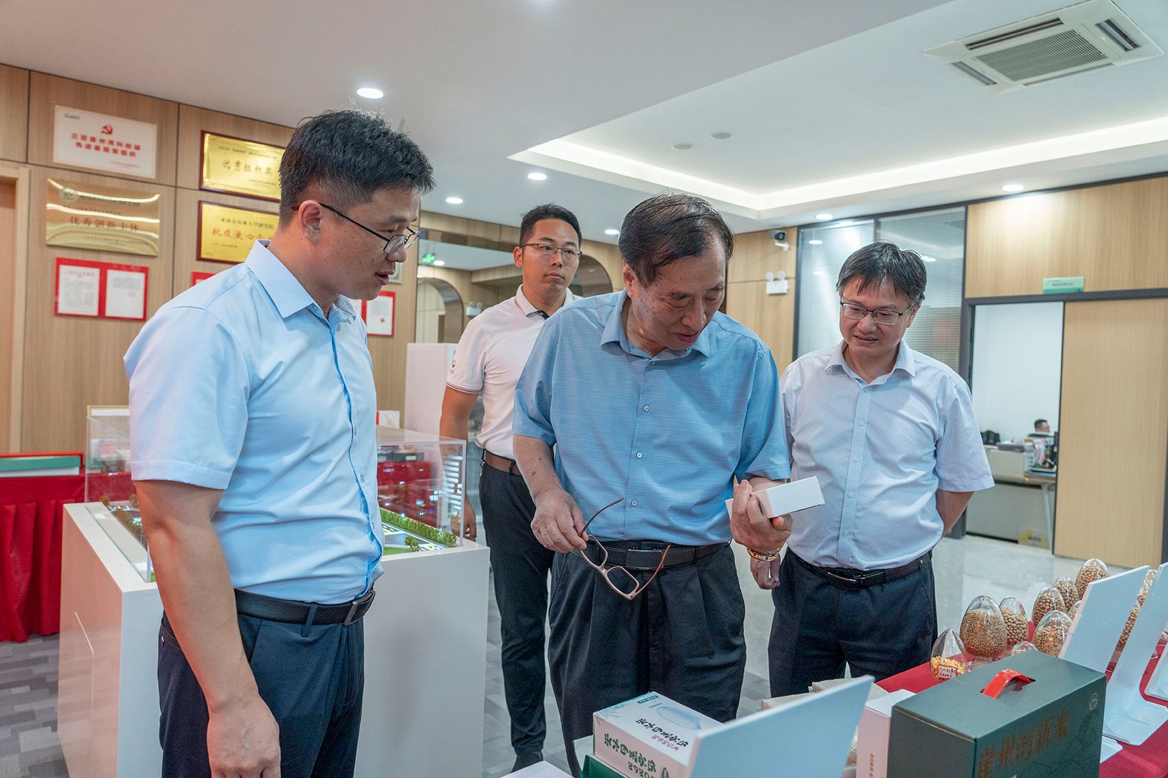 翟虎渠(右二)、李立(右一)调研科研成果