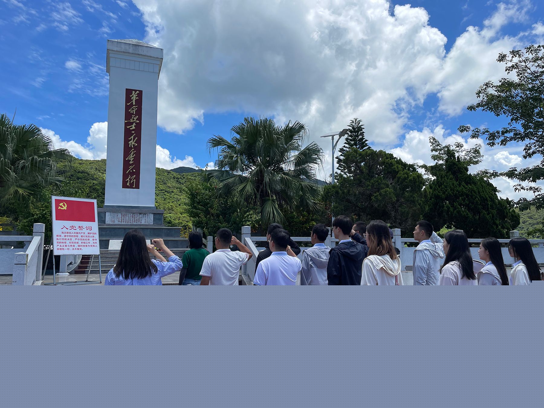 “六连岭上现彩云,竖起红旗革命军,二十余年游击战,海南人民树功勋。”马克思主义学院副教授张松引用朱德元帅1957年参观六连岭时的题词开启了一堂现场思政课。“六连岭革命根据地,是中国共产党领导人民群众在海南坚持对敌斗争时间最长、规模最大的革命根据地之一,为夺取琼崖新民主主义革命的胜利作出了重大贡献,被誉为‘海南的井冈山’。伟大的琼崖革命斗争孕育并形成了伟大的琼崖精神,即坚定信念、坚持斗争、实事求是、勇于担当、民族团结、共同奋斗。琼崖精神与伟大建党精神一脉相承,是对伟大建党精神的传承和发展。”在六连岭烈士陵园纪念亭里,同学们围坐在老师周围认真聆听讲解,并瞻仰了六连岭革命烈士纪念碑,在碑下重温入党誓词,誓言将不忘初心,继续前行。