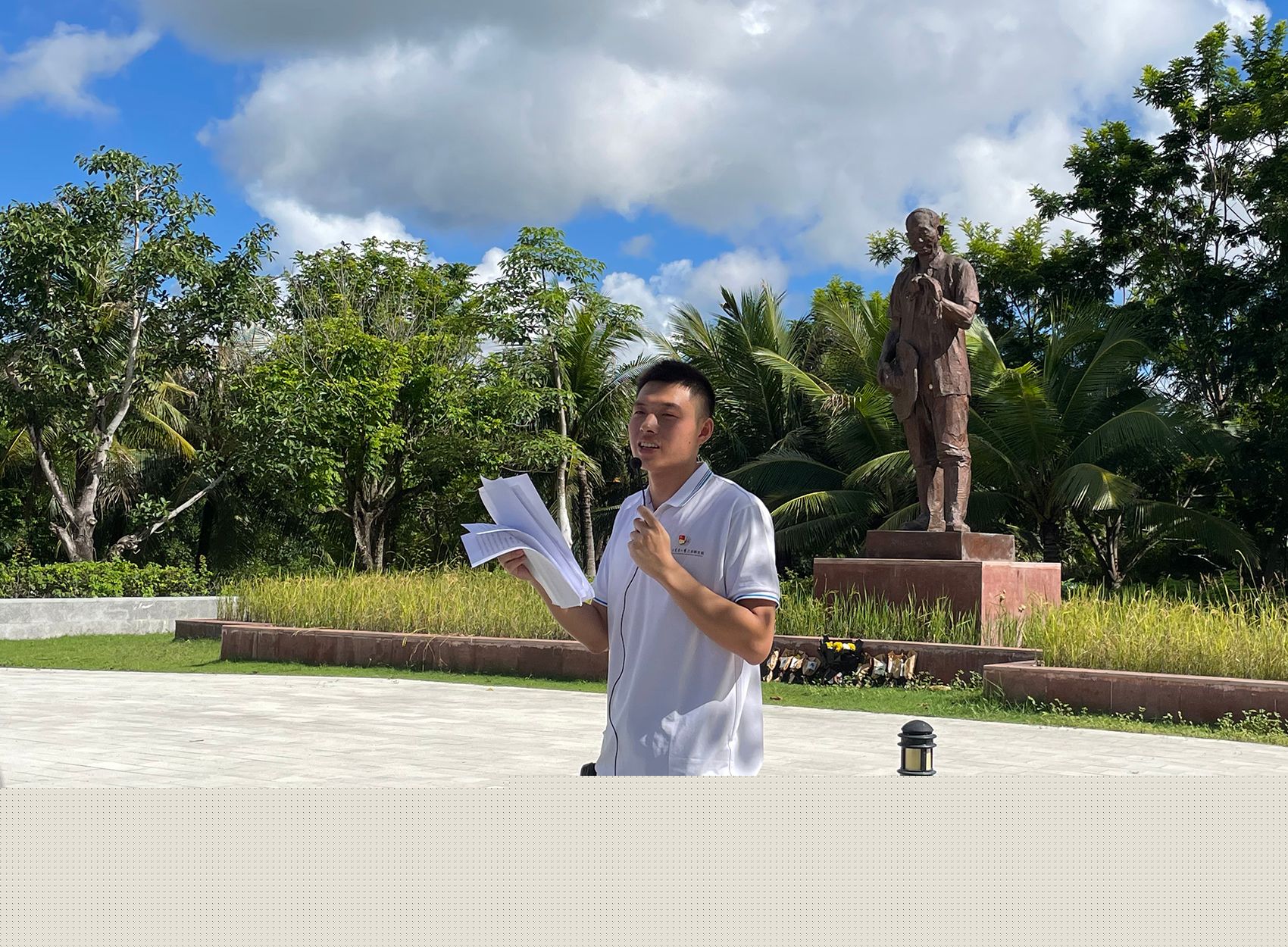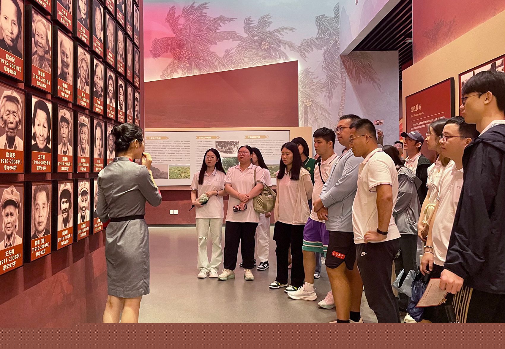 在水稻国家公园袁隆平院士铜像前,学生代表郭文雷分享了袁隆平院士的事迹,以及袁隆平在南繁科研岁月里展现出的“胸怀祖国、服务人民、艰苦卓绝、拼搏进取、创新创业、求真务实”的“南繁育种”精神。郭文雷表示青年学生要从中汲取精神力量,继承袁隆平院士的遗志,发扬“南繁精神”,为中国的农业发展贡献自己的力量。随后,师生们还参观了红色娘子军纪念园、琼海中国南海博物馆和文昌航天城。