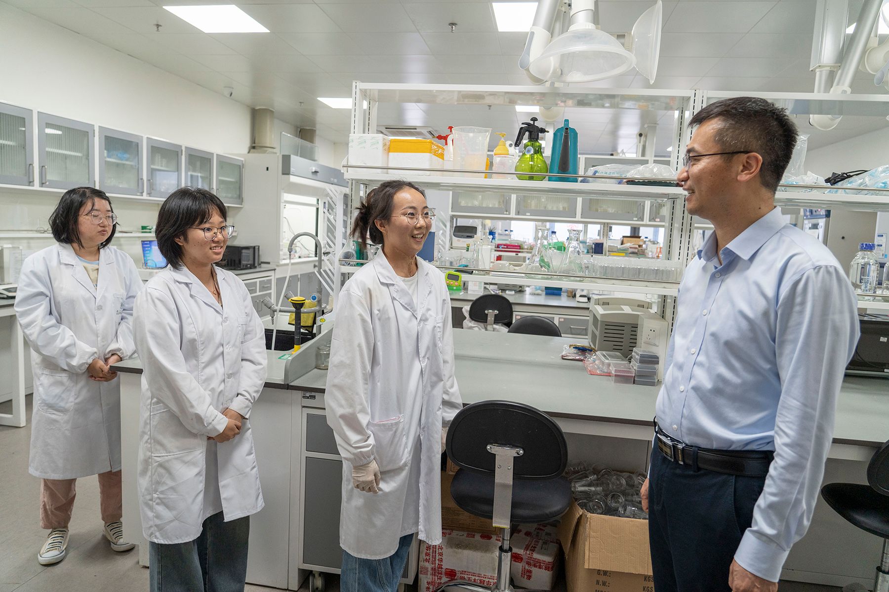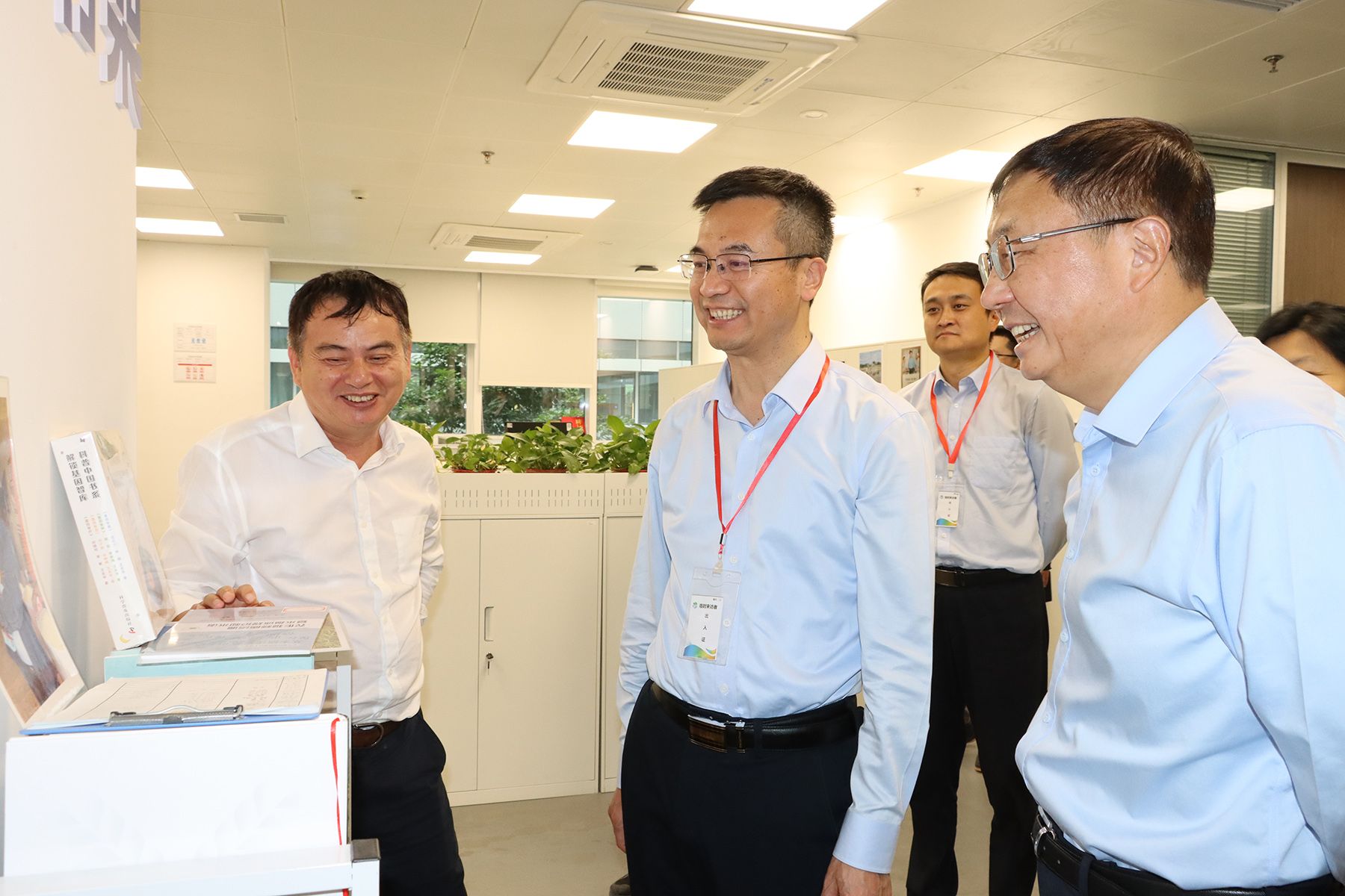 陈发棣一行考察了坝头基地和沈其荣院士村长“木霉生物有机肥”项目,并实地考察了即将建成的大豆园艺作物种质创新中心大楼,了解入驻科研团队布局情况,并来到现代农业与绿色生产实验室看望慰问海南专项研究生,并鼓励同学们协同合作,依托有利条件多出科研成果。原副校长胡锋以及部分在琼专任教师参加调研。
