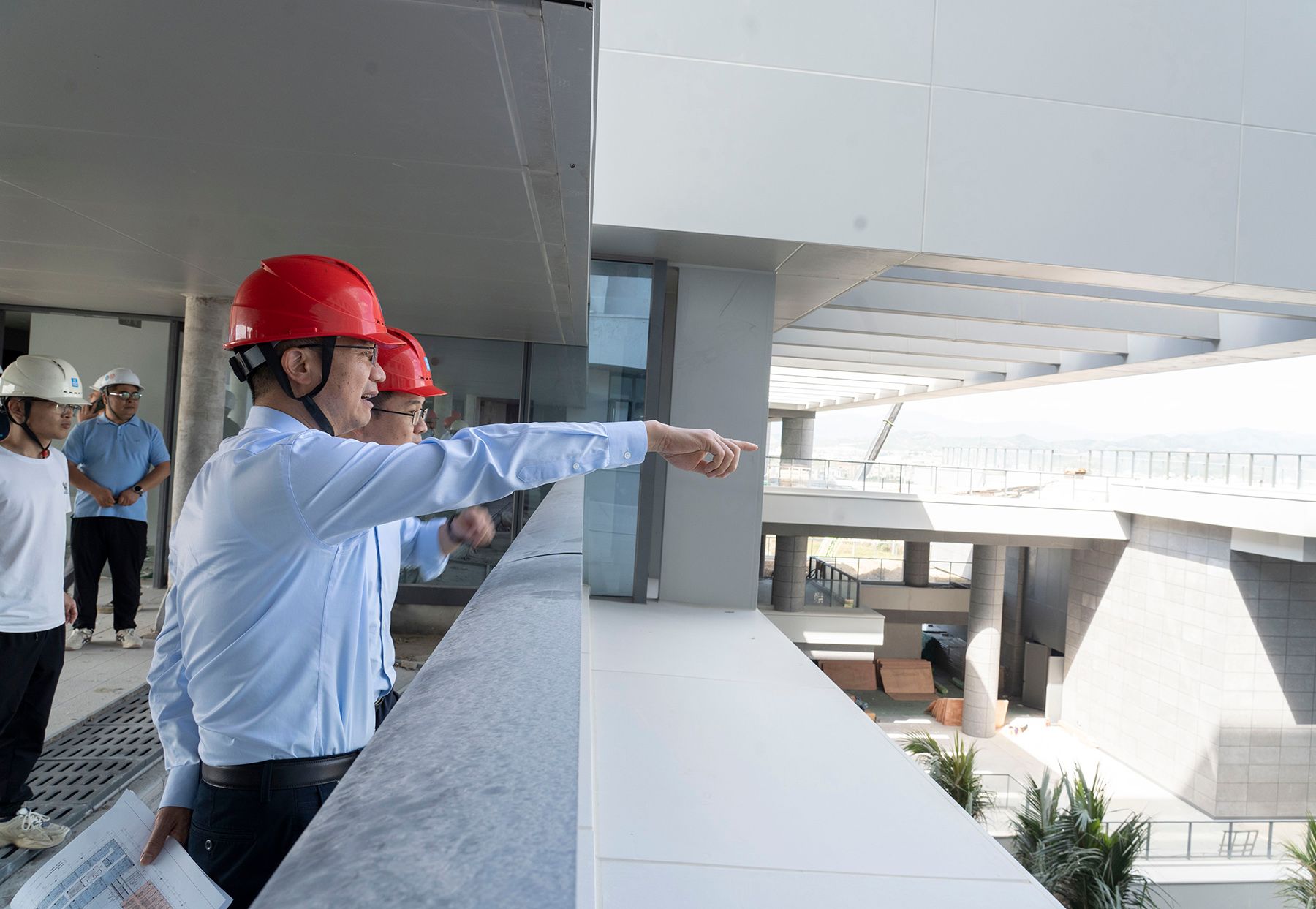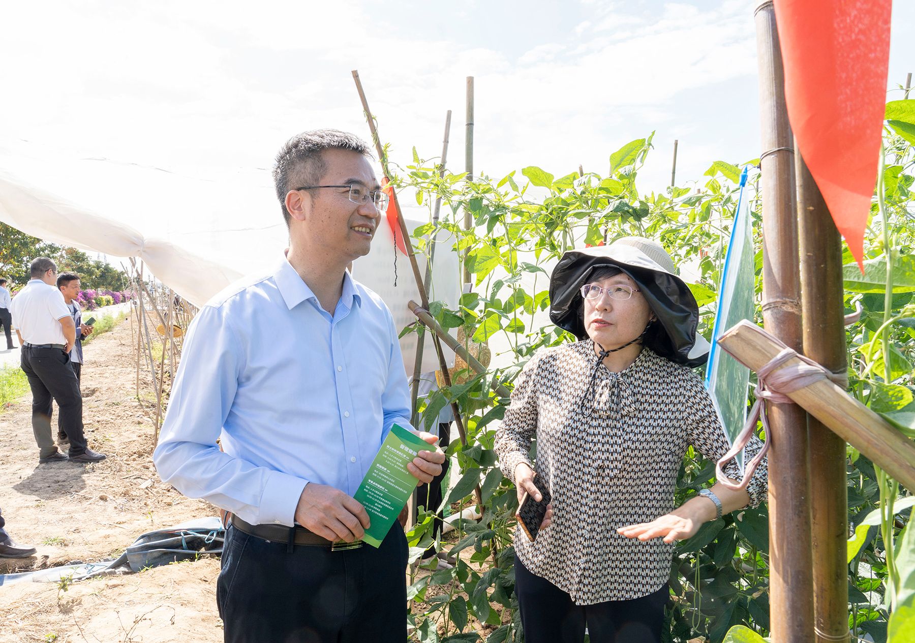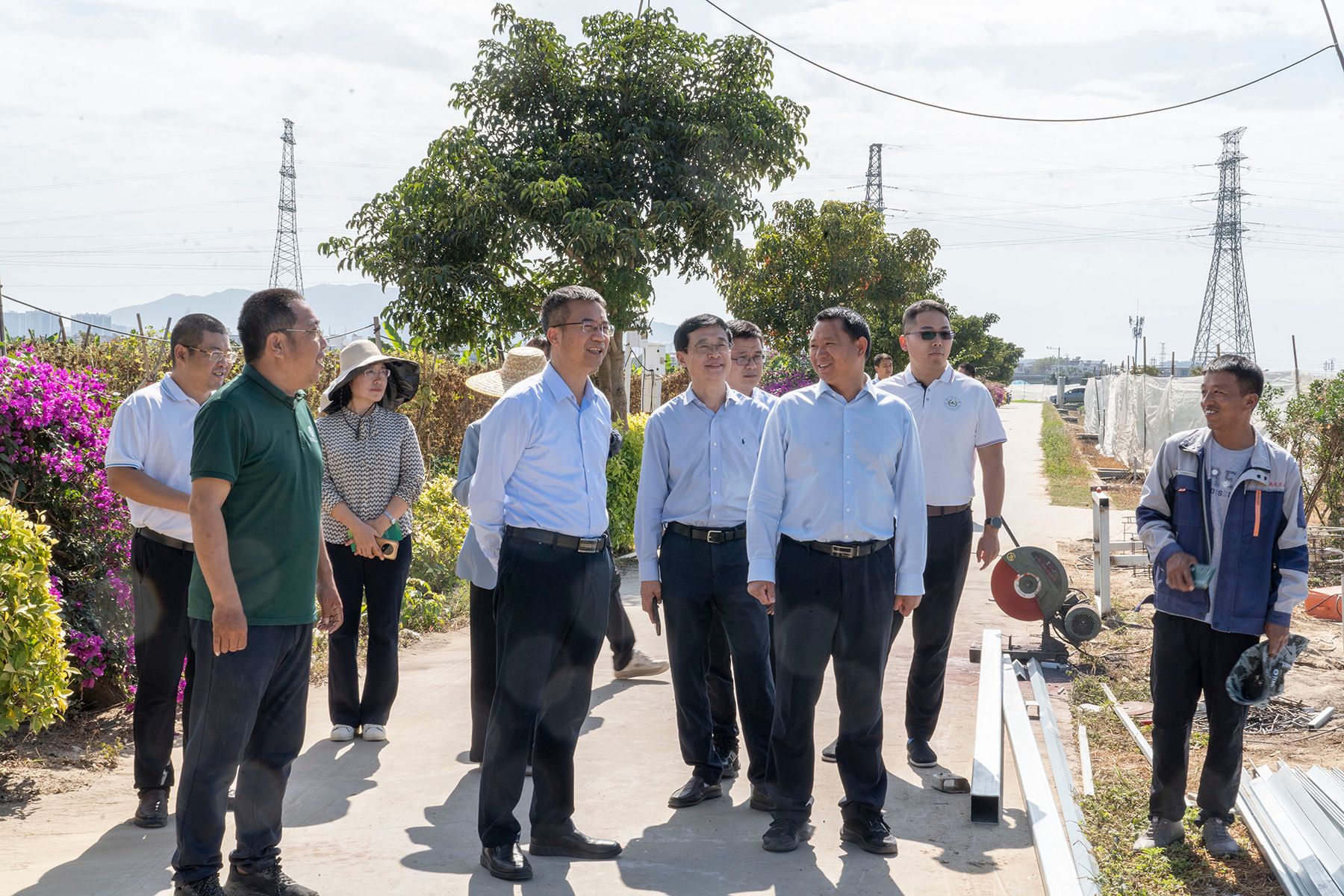 崖州区委常委、副区长陈小平(右三)陪同陈发棣考察坝头基地