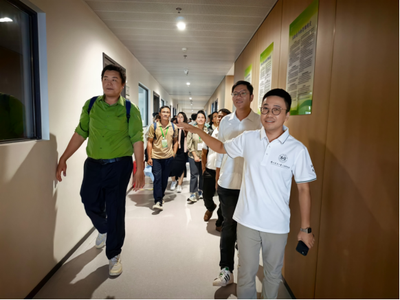 25日,代表团赴我院坝头基地实地考察。基地工作人员为代表团详细介绍了由我院自主研发的智慧农业管控体系,并展示了无人机在田间的实时作业。期间,代表团还赴我院参观了教学成果展及实验室。
