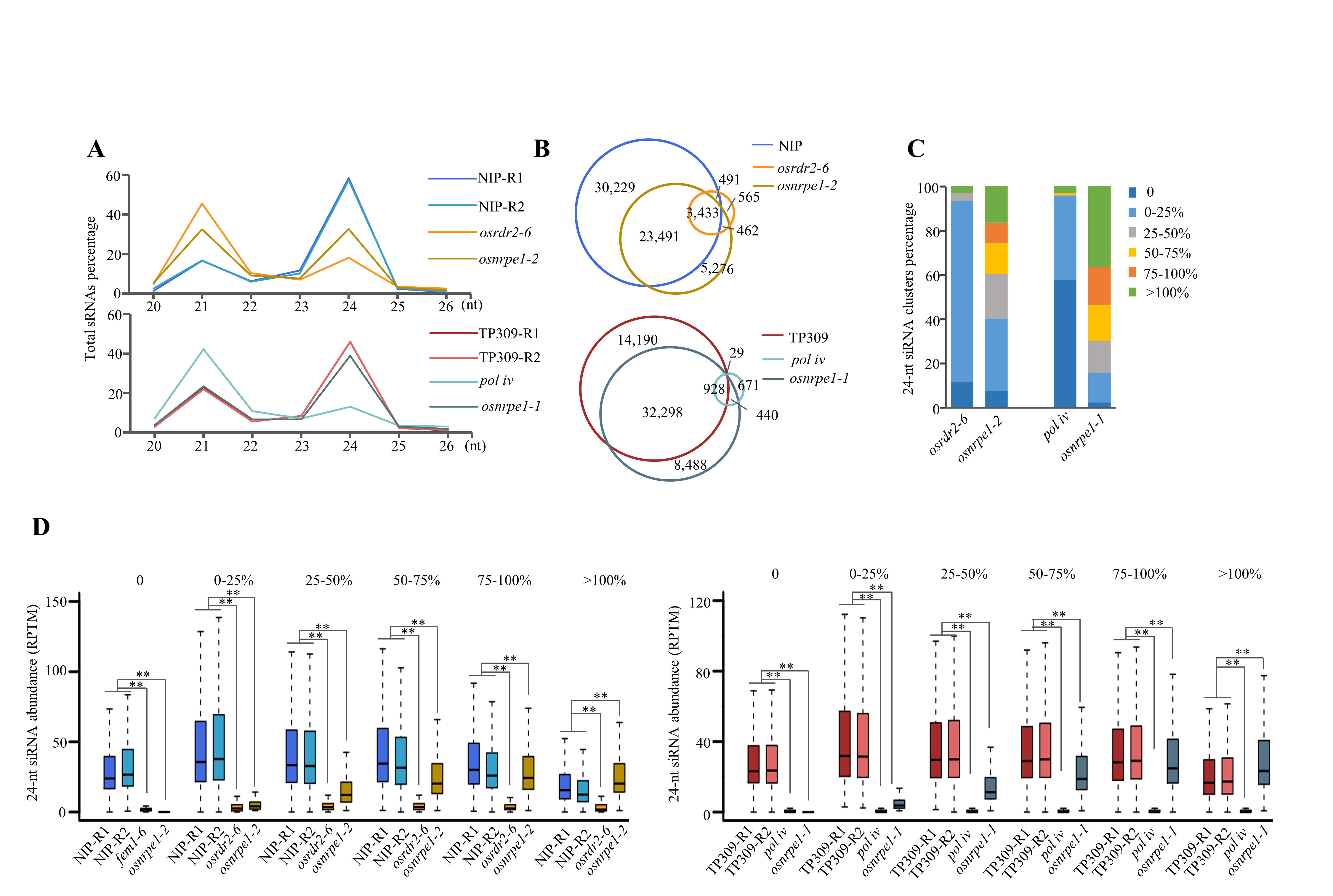 Figure 2. The accumulation of 24-nt siRNA partially depends on Pol V in rice