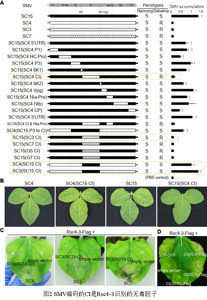 大豆是我国重要的粮食和油料兼用作物,起源于我国,并已有几千年的种植历史。SMV是严重危害大豆生产的全国性病害,克隆抗SMV基因并阐明其抗性机制对SMV防控尤为重要。