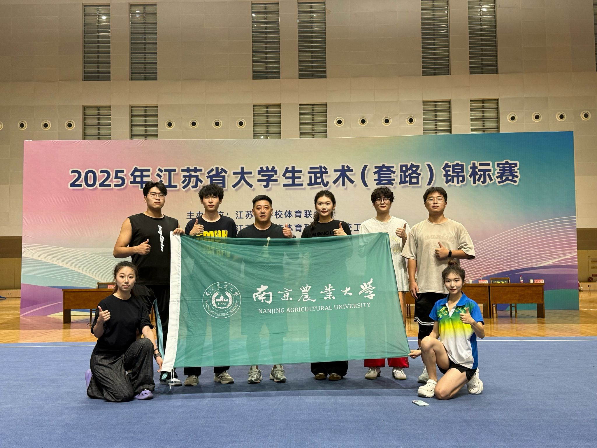 近日,2025年江苏省大学生武术(套路)锦标赛在扬州大学举办。我校高水平武术队凭借扎实功底与顽强毅力,共斩获2金6银4铜的优异成绩,教练白茂强被评为“优秀教练员”。