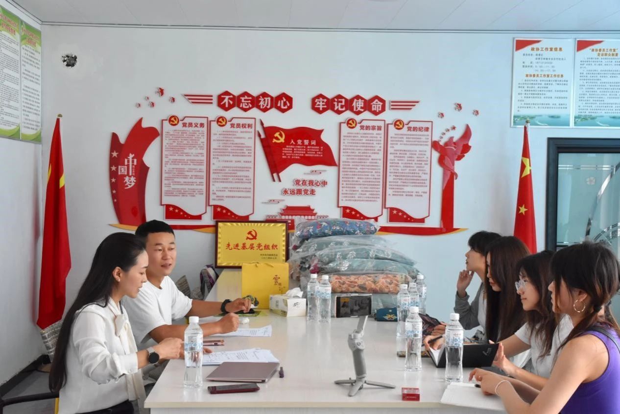 调研团队前往宿州市埇桥区青年企业家联合会调研,与宿州市工商联兼职副主席、宿州市现代物流协会会长、埇桥区青年企业家联合会会长刘煜珈展开座谈交流及问卷调查。
