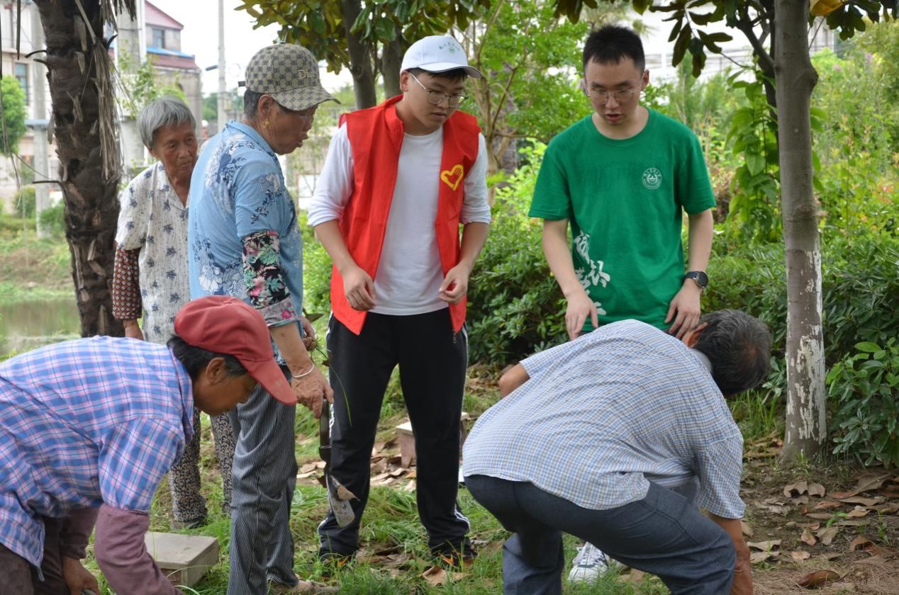 团队成员还积极参与到村庄公共环境建设的实践中去,跟随蒋大爷学习如何使用铲具,辨认杂草与特色绿化植物,进行杂草清理,参与劳作实践。在此过程中,成员们不仅学习了实用技能,也增强了团队协作能力,深化了对生态文明建设的认识,为村庄的美化贡献了自己的力量。