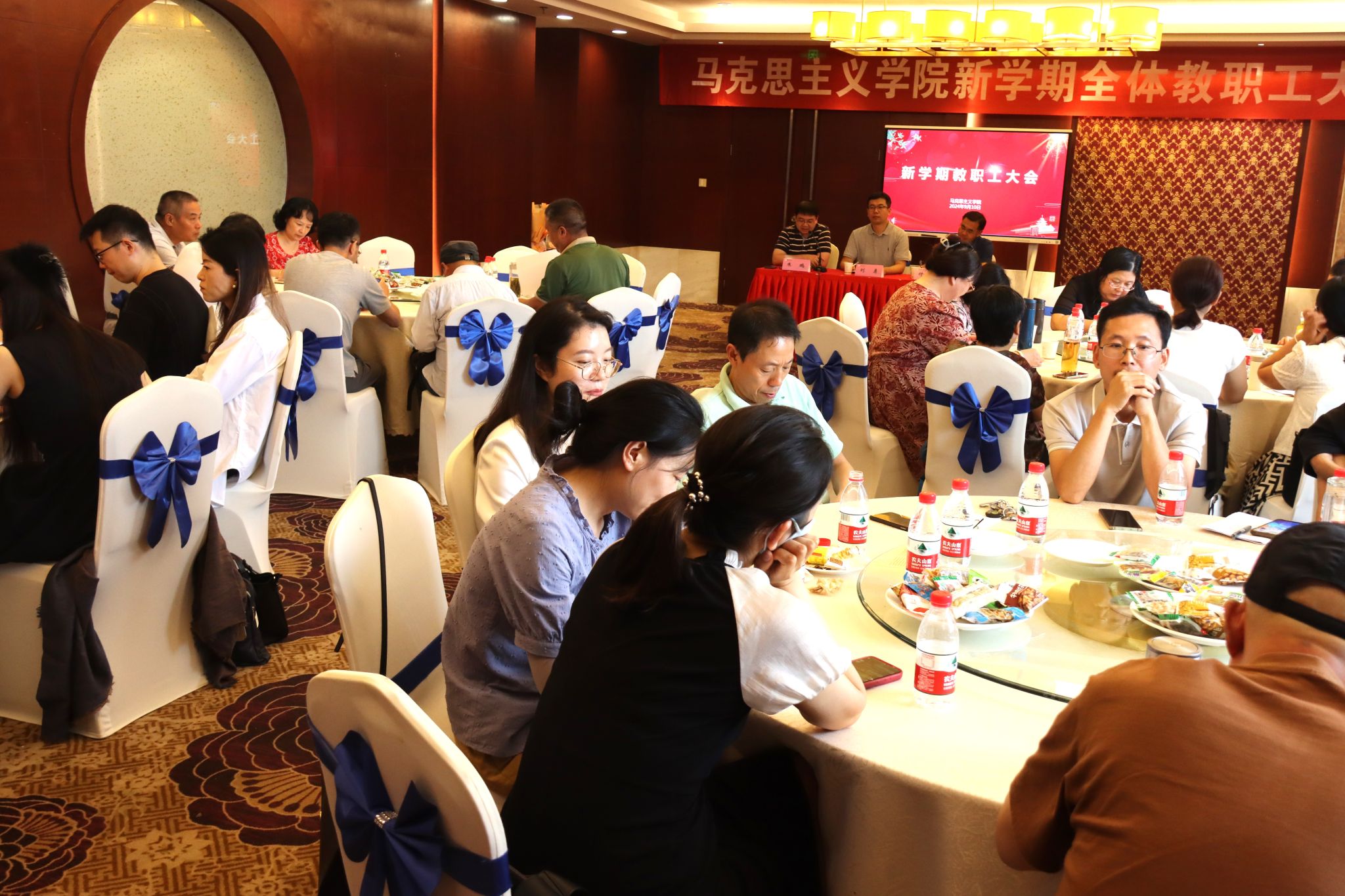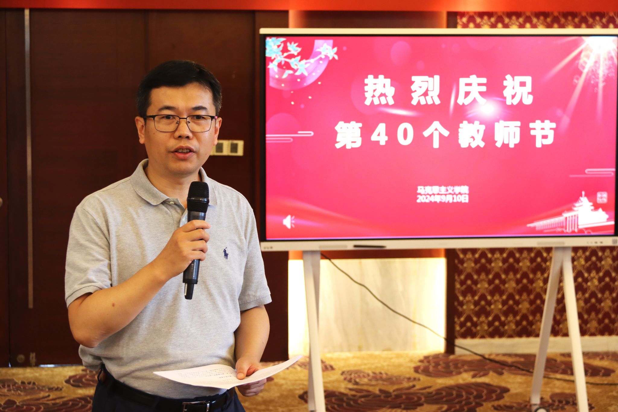 9月10日,马克思主义学院在翰苑宾馆三楼紫金厅举行第四十个教师节庆祝活动。学院党委书记刘勇、院长付坚强、全体教职工参加活动。活动由刘勇主持。