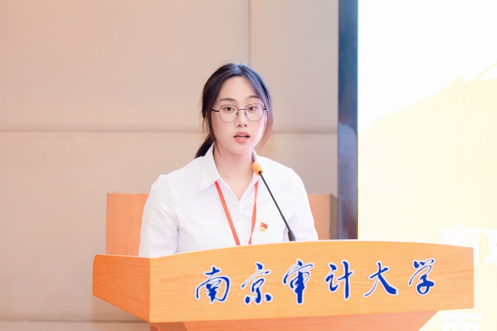 李海燕在闭幕式上作活动总结。她以党建铸魂、党建聚力、党建创新三个关键词对政府审计学院党建工作做了总结与展望,希望未来进一步深化高校交流。