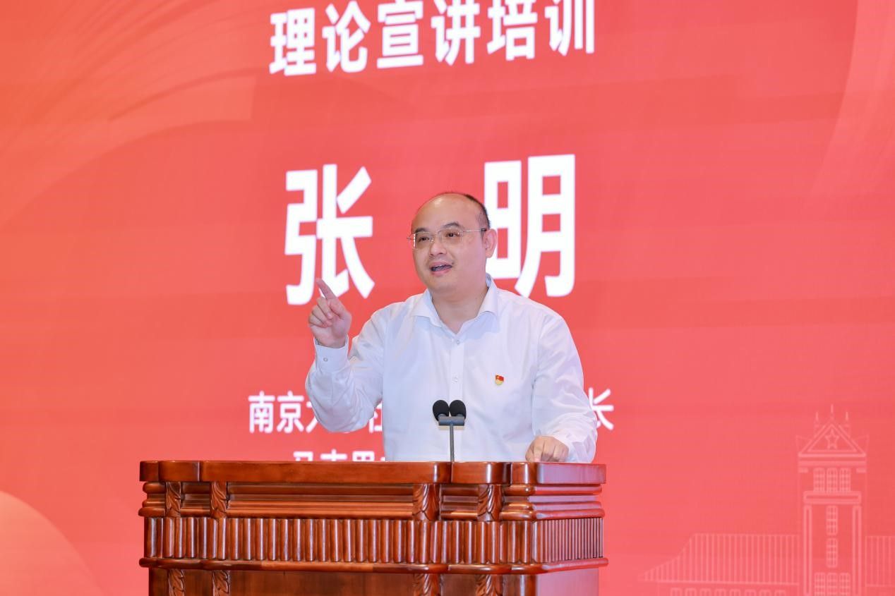 在联学联讲活动中,南京大学社会科学处副处长、马克思主义学院教授张明老师以《如何上好一节党课》为题为现场代表进行理论宣讲培训,他从“党课是什么”“党课讲什么”“怎么讲党课”三个主题与大家进行深入交流,张明教授的讲授深入浅出、内容丰富,以生动鲜活的例子让在场青年学生感受到了理论宣传的魅力。