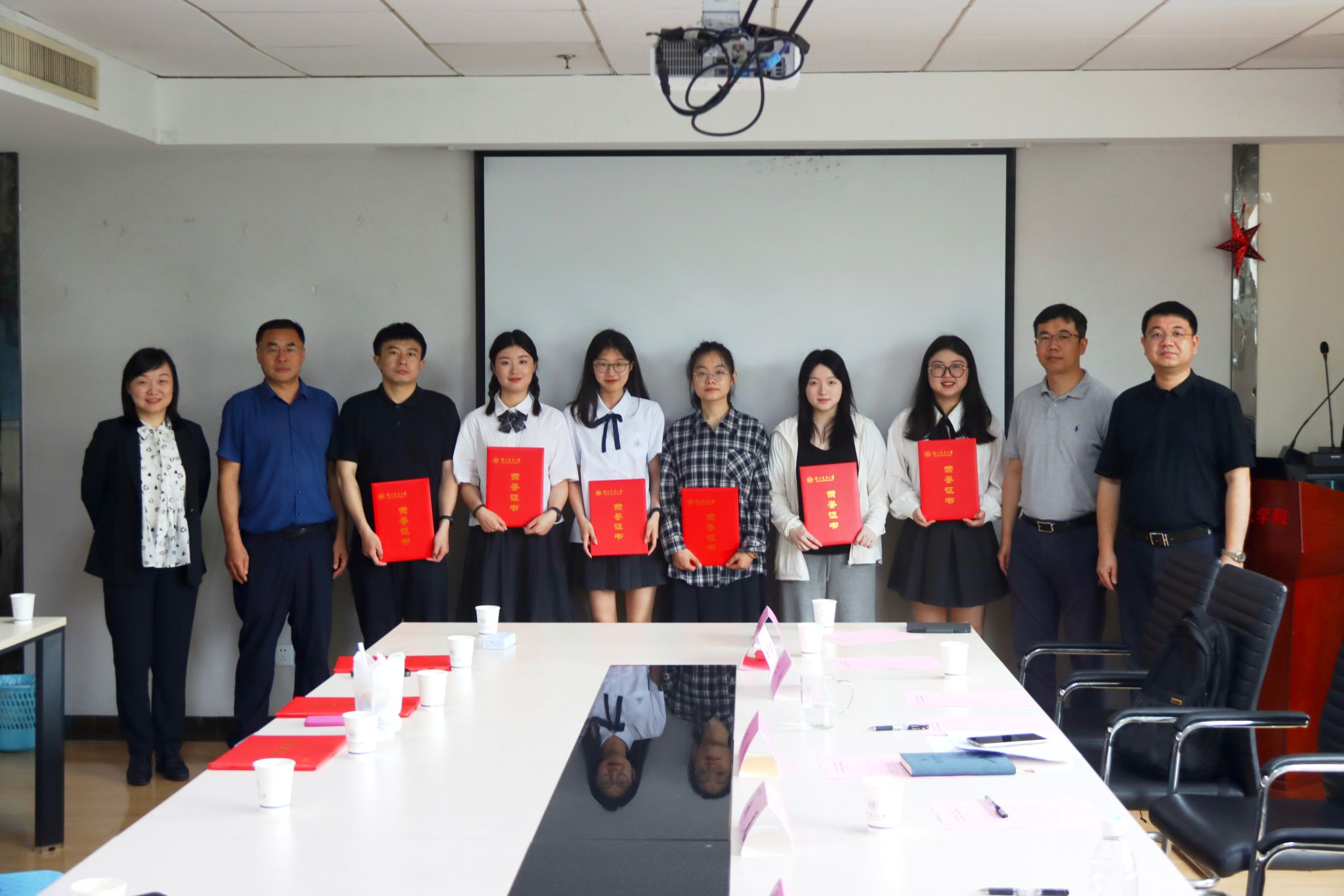 副院长朱鹏宣读了马克思主义学院荣获校级、院级优秀毕业生的表彰决定,学院领导为获奖学生颁发证书并合影留念。