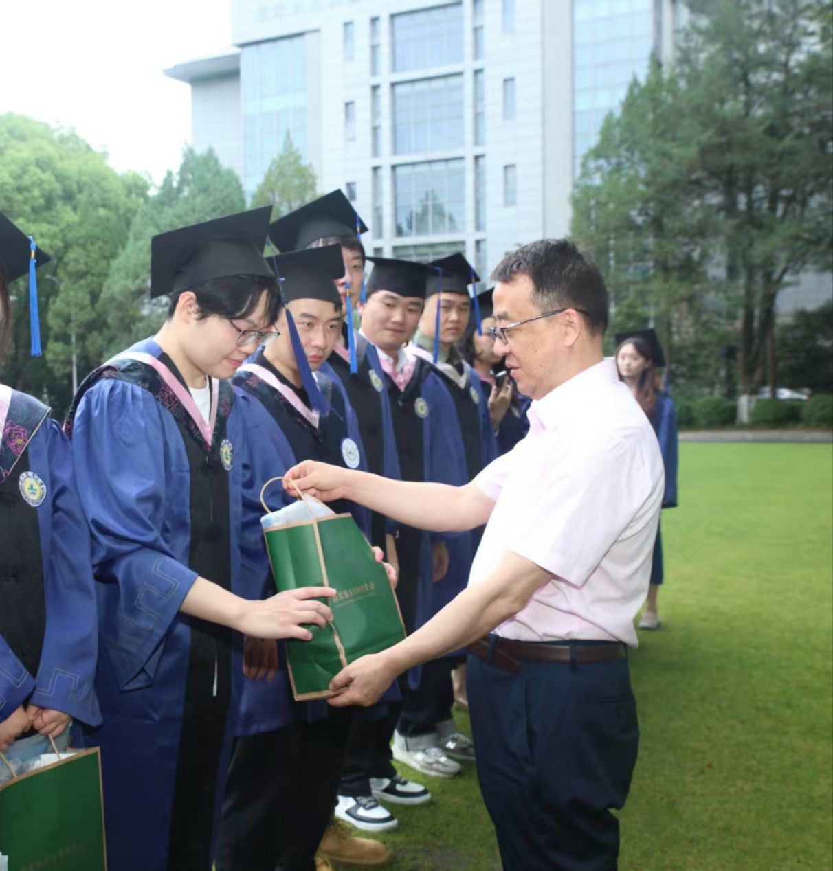 青瓦飞檐拾晨露,钟山脚下启新程。6月10日,校党委常委吴群、学院全体领导、导师代表、行政人员代表与马克思主义学院2025届毕业生在主楼前合影留念。吴群与毕业生亲切交流并为毕业生赠送毕业纪念品。