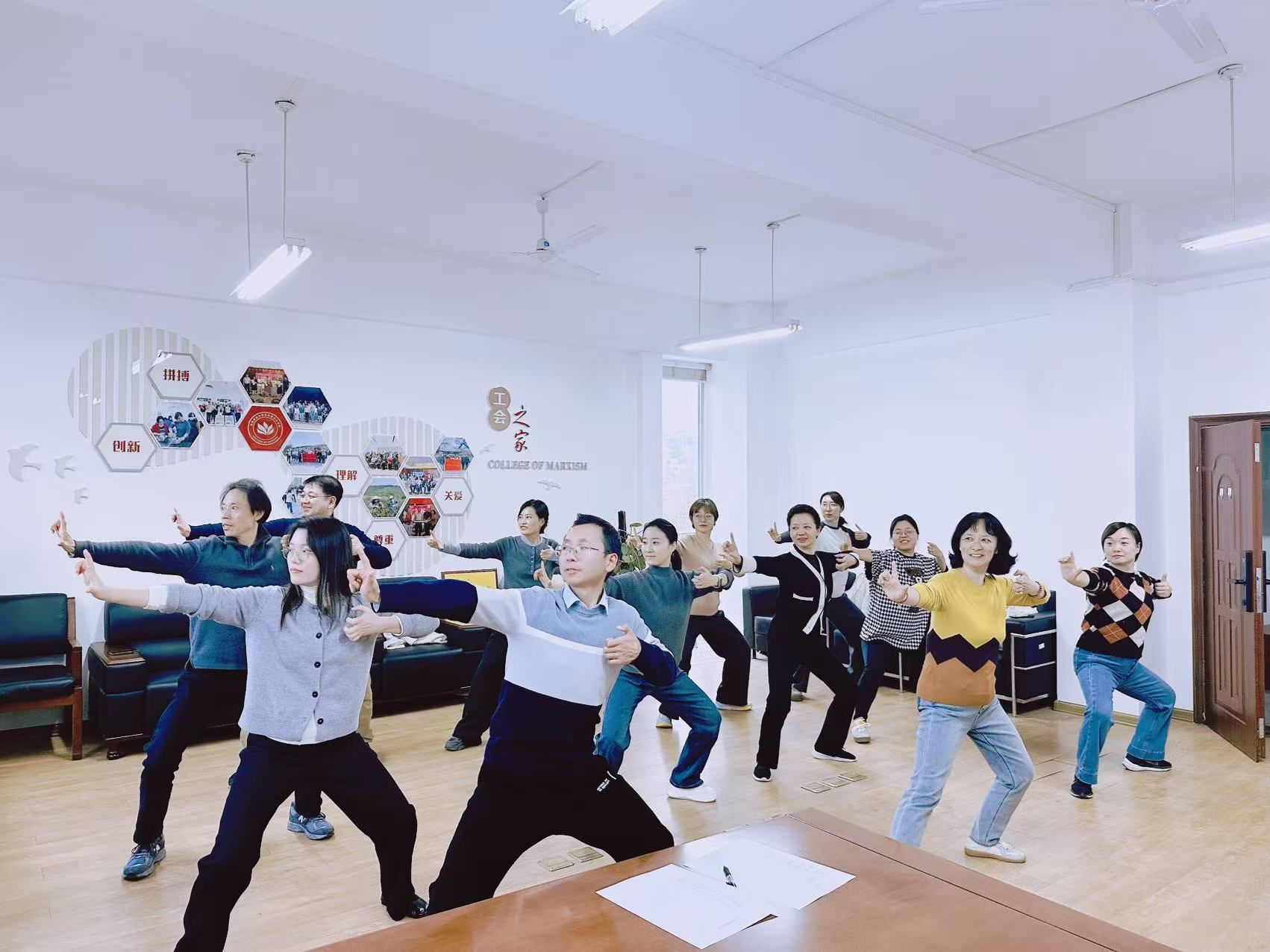 近日,为丰富教职工文化生活,提升身心健康水平,ios版雷竞技官网马克思主义学院工会特别策划并组织了八段锦培训活动,每周一次,共10次。11月5日下午,学院工会邀请了国家级体育裁判张勇老师前来授课,为教职工带来了一场生动实用的传统健身指导。学院十余名教师踊跃参与了此次培训。