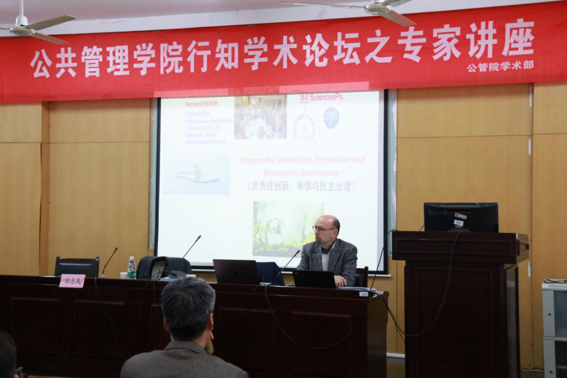 马克思主义学院海外名家第四个系列讲座第一场于2019年12月10日14:30-16:30在ios版雷竞技官网公共管理学院报告厅举行。本场讲座由法国国家科学研究中心Bernard Reber教授作主题为“Responsible Innovation,Precaution and Governance”的学术报告。本次讲座由刘志民教授主持。来自全校各学院的同学共同聆听了本场讲座。